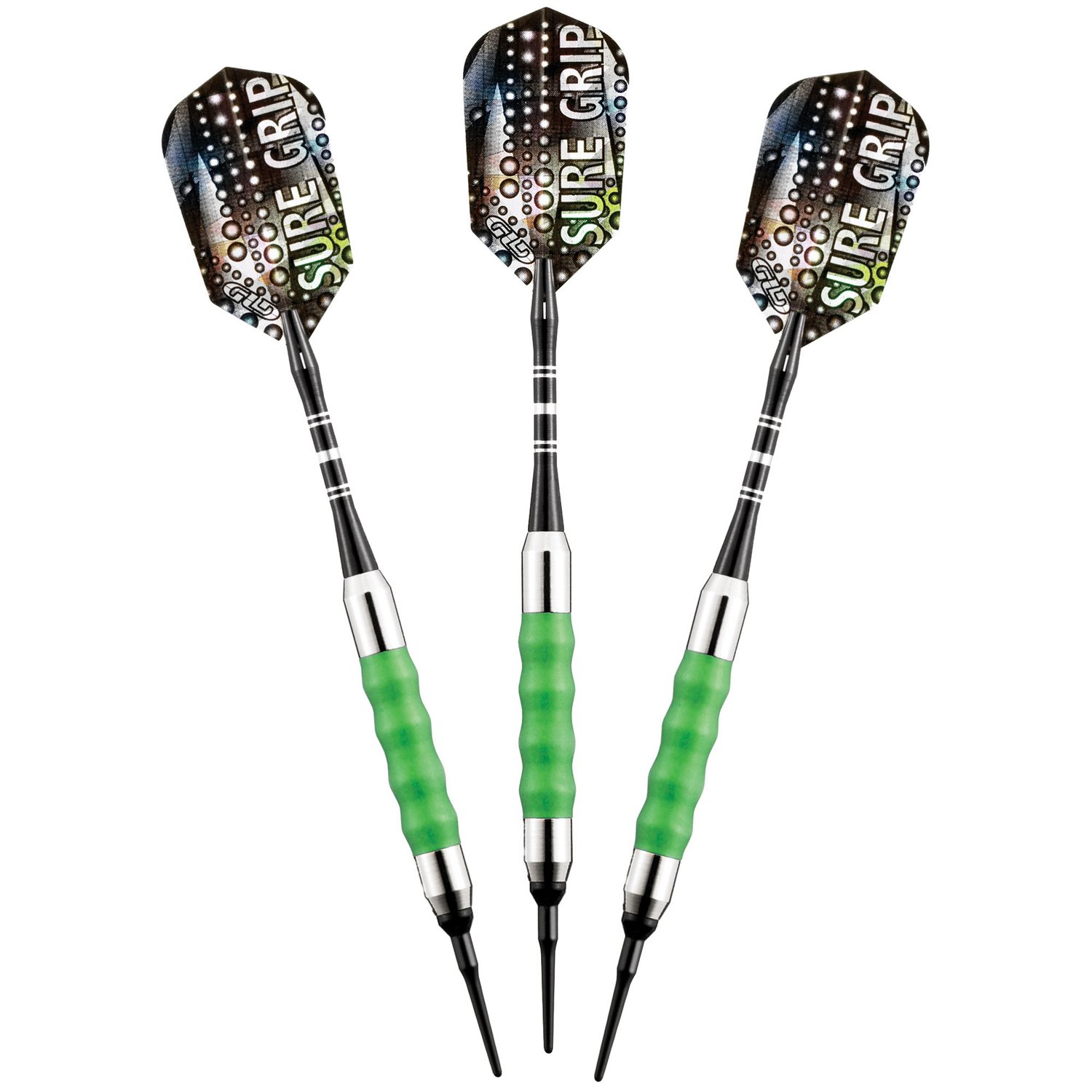 Designed with ribbed rubber sleeves, the Viper Sure Grip Soft-Tip Darts 3-Pack aid in a firm, comfortable grip. The sleeves are removable for easy replacements and fit snugly over the barrels for a secure, confident grip. Soft tips. Sold in 16-gram and 18-gram weights.