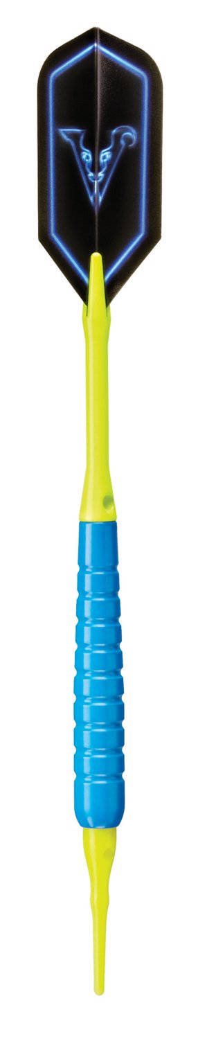 Streak ahead of your competition with the Viper V Glo 18-Gram Soft-Tip Darts Set, which includes translucent V Glo flights that flash neon in the light. Designed with bright colors, the darts feature grooved, front-weighted barrels for optimal performance and aluminum shafts with locking holes. 2BA Tufflex soft tips. Includes 3 barrels, 3 shafts, 3 flights and 3 tips.