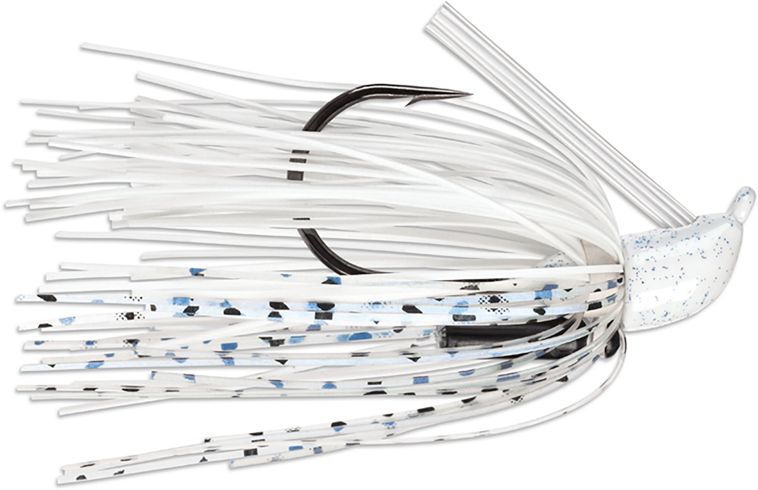 Fish in the weeds with the VMC 1/2 oz Utility Jig. This jig comes with a carbon steel hook, plastic keeper and a single rattle to keep fish on the line. The silicone full skirt offers lifelike movement in the water, while the nylon weed guard helps keep it from getting caught.