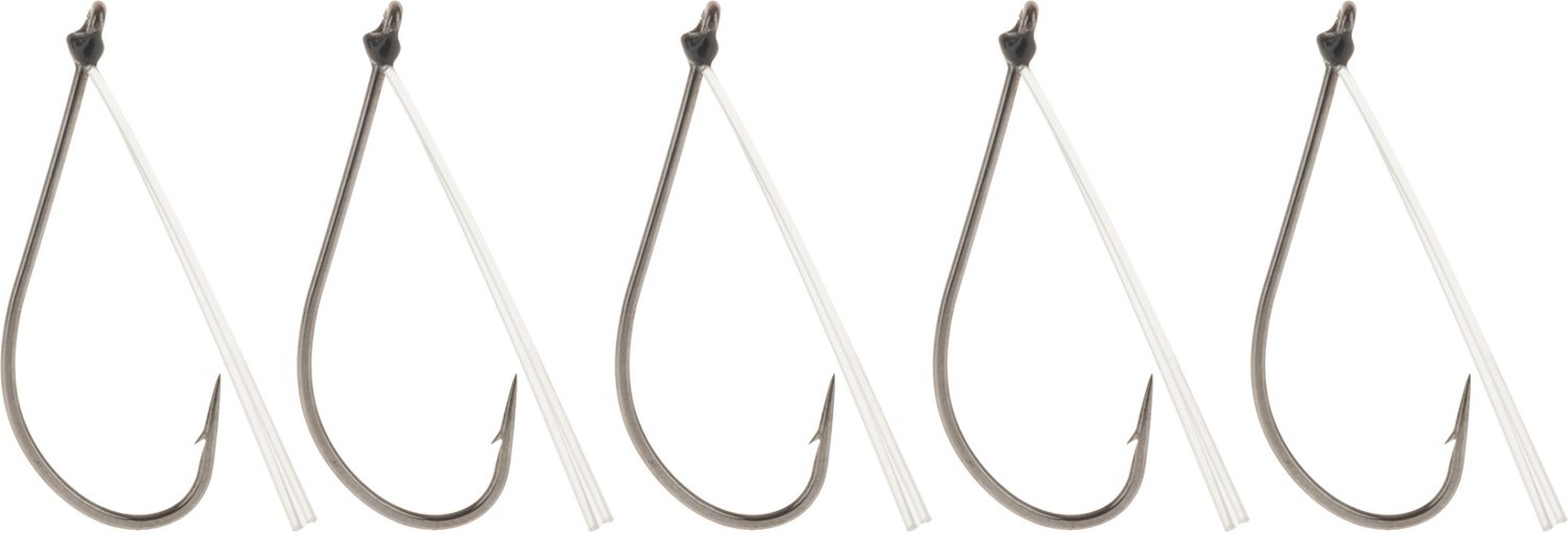 Made with fluorocarbon weed guards, the VMC WNK Weedless Neko Wide-Gap Single Hooks 5-Pack offer conveniently weed-free performance. They're crafted from nickel with wide gaps and 3-degree offset points. The hooks also feature long shanks and resin-closed eyes.