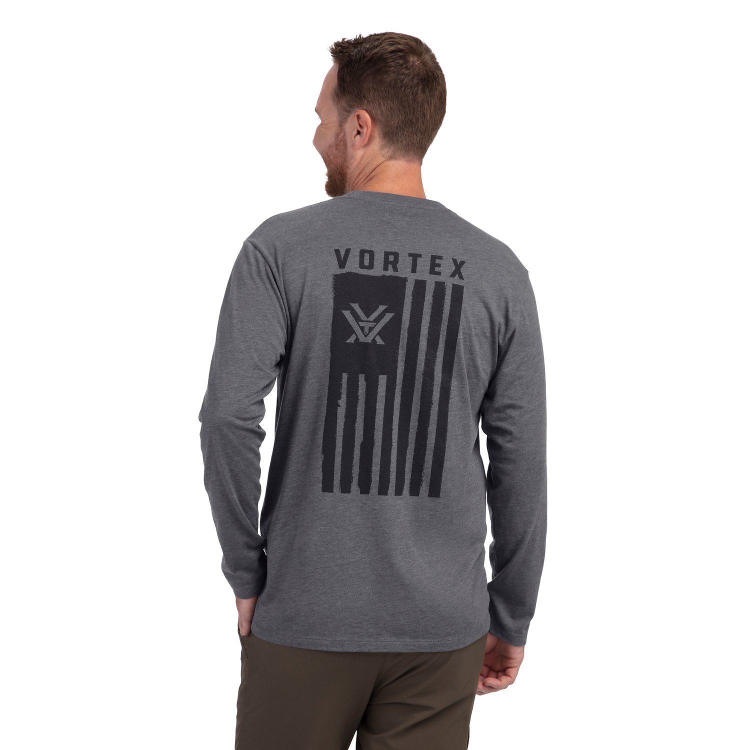 Show your love for your country by wearing the Vortex Men's Salute Long Sleeve T-shirt. Cotton blend fabric delivers day-long comfort and durability. The printed flag graphic displays your brand and national pride.