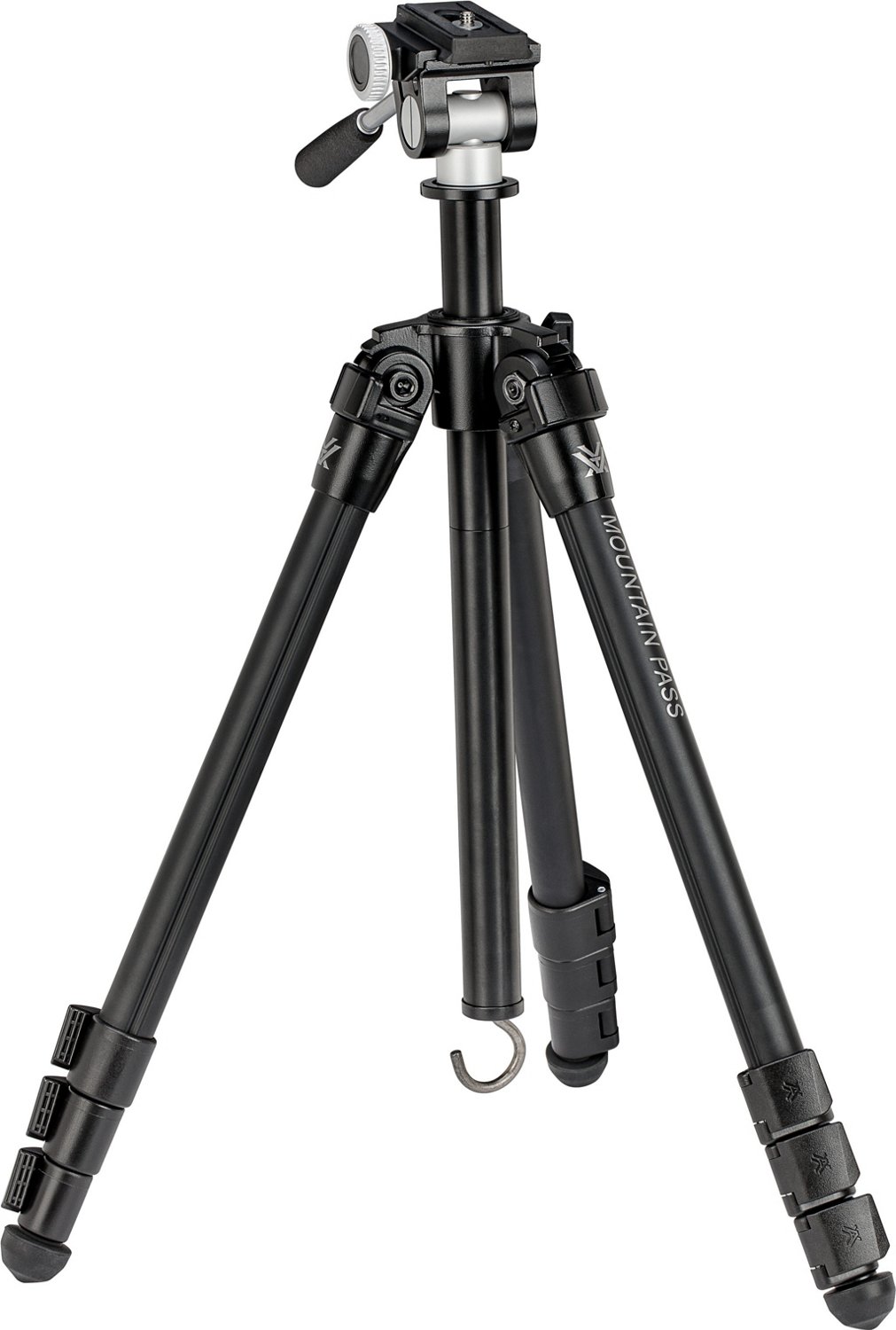 Go hands-free with the Vortex Mountain Pass Tripod Kit. The aluminum construction affords durability, while the adjustable legs accommodate uneven terrain. The flip lever locks help secure the tripod, and the rubber feet ensure stability.