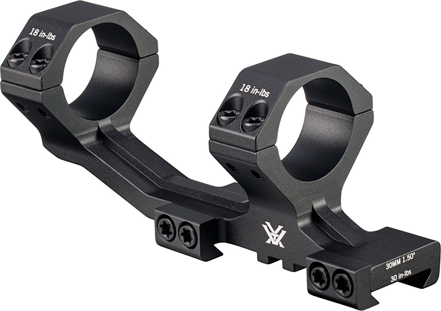 Customize your scope mount with the Vortex Sport Cantilever 30mm Mount. The 6061 aluminum construction affords durability, while the horizontal split allows for easy mounting. Commonality between fasteners and components enables single-tool mounting, and the design offset eliminates the need for multiple offsets.