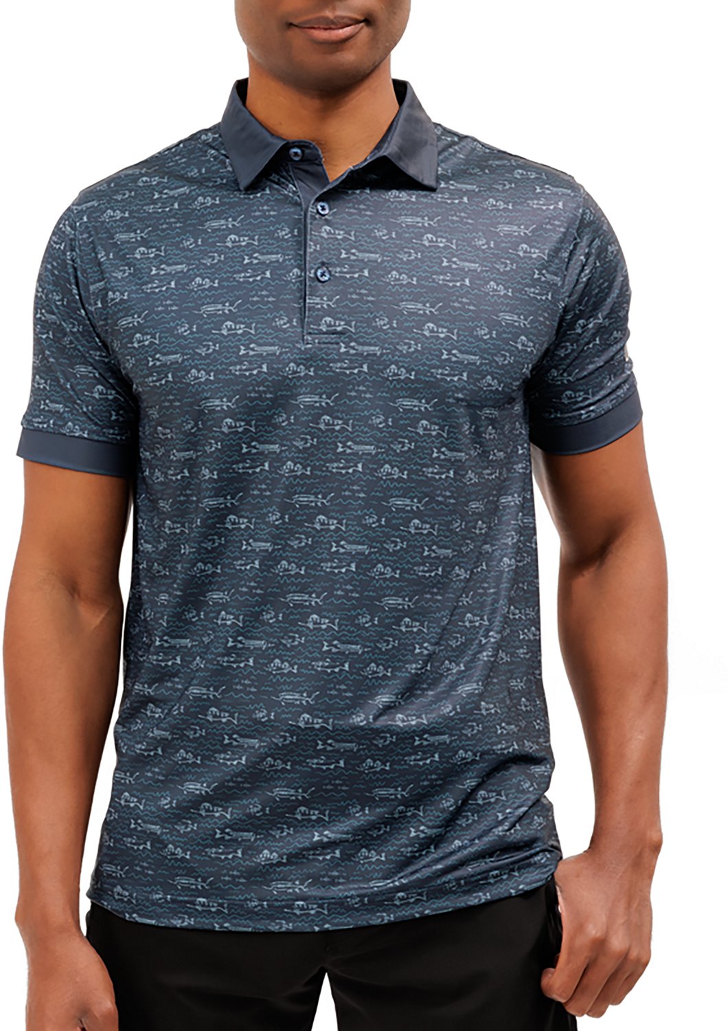 Hunt for fish with the Waggle Men's Fish Finder Polo Shirt. The polyester and spandex material provides a comfortable feel, while the moisture wicking technology helps keep you cool and dry.