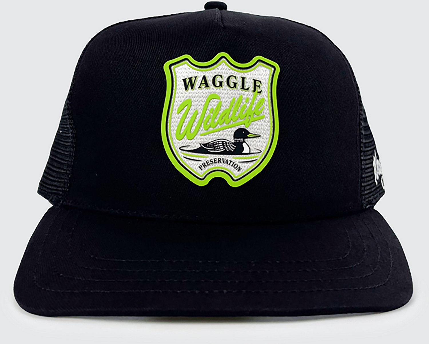 Make memories with the Waggle Men's Wildlife Trucker Hat. The cotton and polyester mesh material provides comfort and breathability, while the snapback closure offers a secure fit. The embroidered logo adds a stylish touch.