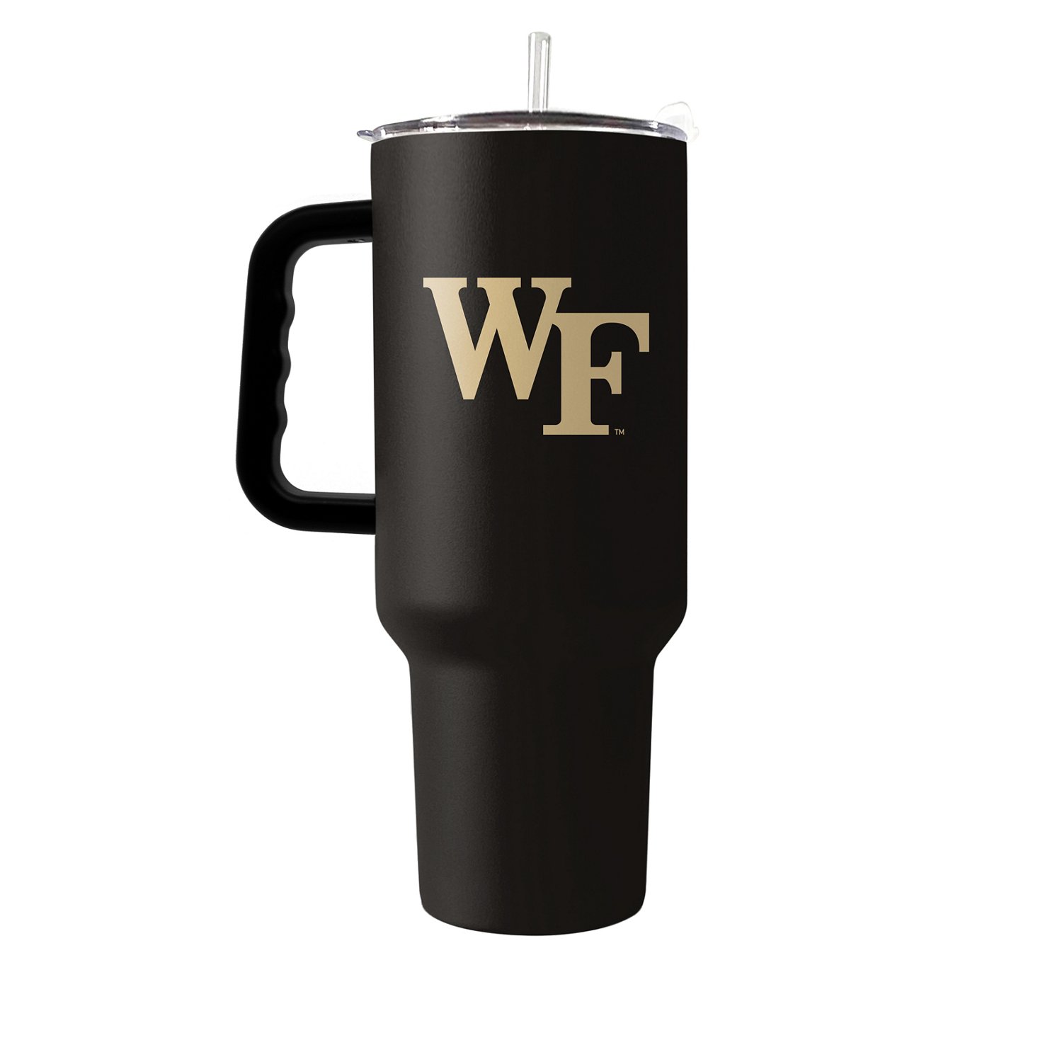 Go big and bold with the University of Wake Forest 40 oz Flipside Powder Coat Tumbler. Its generous proportions ensure you’ll reach your hydration goals. The double-wall vacuum insulated stainless steel construction keeps drinks cold all day. It comes in team colors and is printed with your favorite team logo. The durable carrying handle makes it easy to transport, and fits in most standard cup holders. Designed to keep you hydrated all day long, this tumbler is topped with a convenient screw-on plastic slider lid to prevent spills and leaks. This trendy size is great for people who are serious about their workouts. It’s also great for long road trips and outdoor activities at the park, beach, pool or sports field.