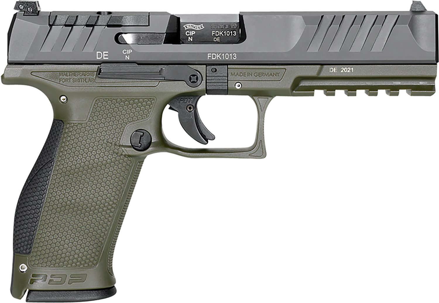 Arm yourself with the Walther PDP 9mm Striker Fired Pistol. It is striker fired with a 18-round capacity. The stainless steel barrel is 4.5-inches long, and its polymer frame has a picatinny rail. The black grip has a performance duty texture.