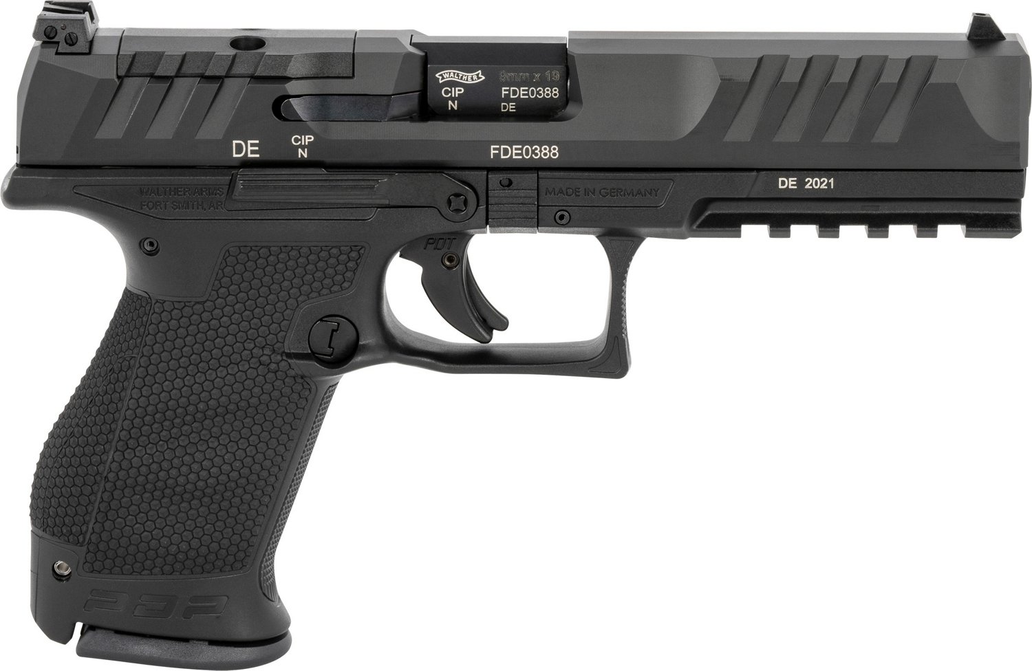 The Walther PDP Compact Optic Ready 9mm Luger 15+1 Pistol has a striker fire action and a polymer frame. There is also a 3-Dot sight and a manual safety.