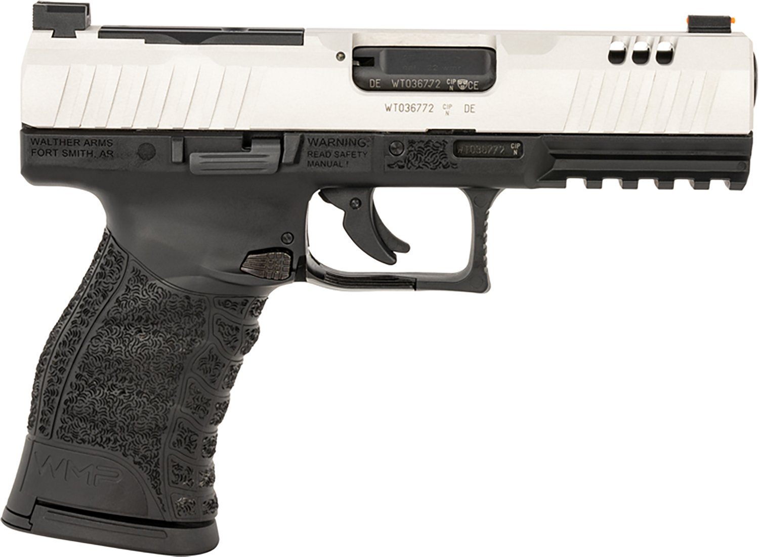 Arm yourself with the Walther WMP .22 WMR Pistol. It is a semiautomatic, double and single action pistol with a 15-round capacity. The stainless steel barrel is 4.5-inches long, and its full size polymer frame is equipped with a Picatinny rail. The serrated aluminum slide finishes off the design.