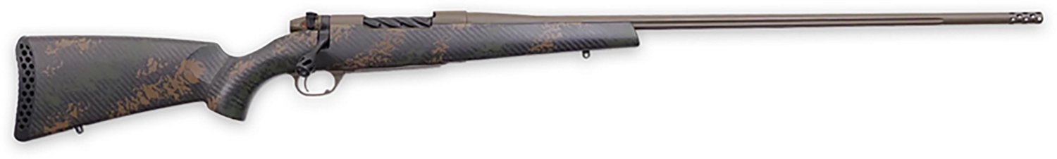 Quickly and precisely take aim at targets or small game with this powerful Weatherby Mark V Apex 7MM Backcountry Bolt Action Rifle. The lightweight Blacktooth carbon fiber stock is easy to handle and withstands regular use out in the field or at the range. The fluted barrel, trigger guard, receiver, bolt, bolt knob and safety feature a Creakote finish for ample durability. Shoot up to 5 rounds at once before you need to reload, thanks to the 4-round magazine with an extra space in the chamber. The 3DHEX recoil pad features interlocking voids that progressively collapse during recoil to mitigate the bulk of the force from each shot, making the Weatherby Mark V Apex 7MM Backcountry Bolt Action Rifle comfortable to use long-term.