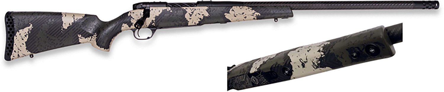 The Weatherby Mark V Backcountry Guide .243 Win Bolt Action Rifle is bolt action and has a 4+1-round capacity. It's built with a BSF carbon fiber barrel with threaded muzzle, Peak 44 Blacktooth Exposed carbon fiber stock and an adjustable TriggerTech trigger. Weighing 5.6 pounds, this rifle features a 22-inch barrel and a 1:7.5 inches twist rate. Finally, the Weatherby Mark V Backcountry Guide .243 Win Bolt Action Rifle is equipped with a fore-end with integrated Spartan Precision gunsmithing adapters, 3DHex recoil pad, Accubrake ST and a deep spiral-fluted bolt.