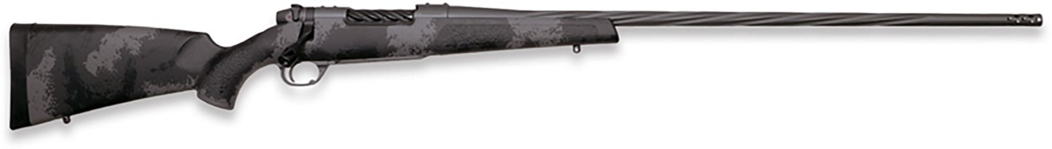This Weatherby Mark V Live Wild .300 PRC Bolt-Action Rifle is a go-to choice for hunters and sport shooters. It features a carbon-fiber stock, a 26-inch threaded Cerakote-finish barrel and a manual safety.