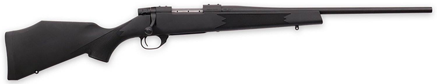 The Weatherby Vanguard Synthetic Compact .243 Win Bolt-Action Rifle is designed for hunting and sport shooting. Its compact threaded barrel measures 20 inches, and its synthetic stock incorporates Griptonite. Other features include a 2-stage trigger and manual safety. It fires sub-MOA and comes with stock spacers.