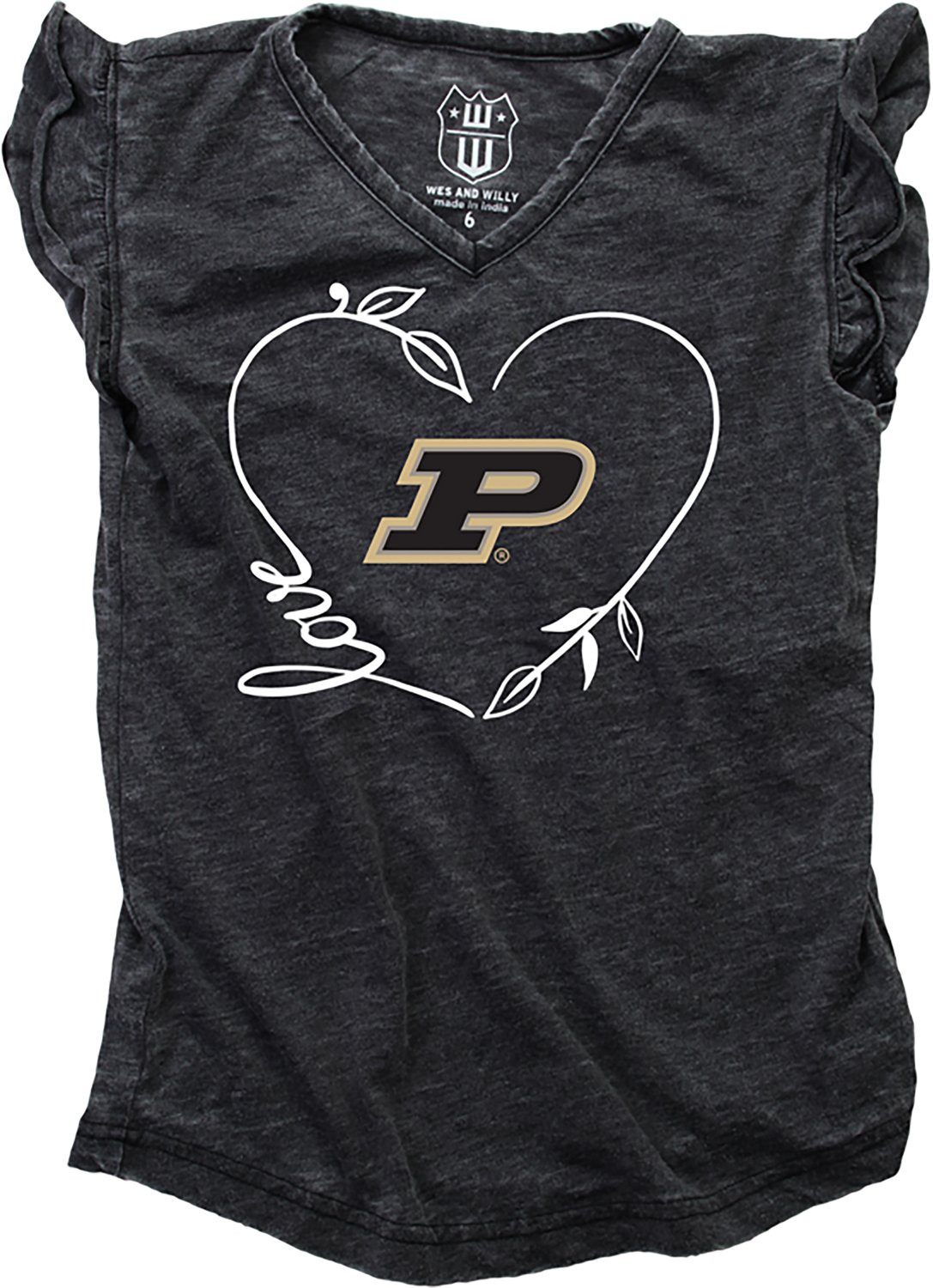 Wes and Willy Girls' Purdue University Heart Ruffle Sleeve Burnout Tank Top