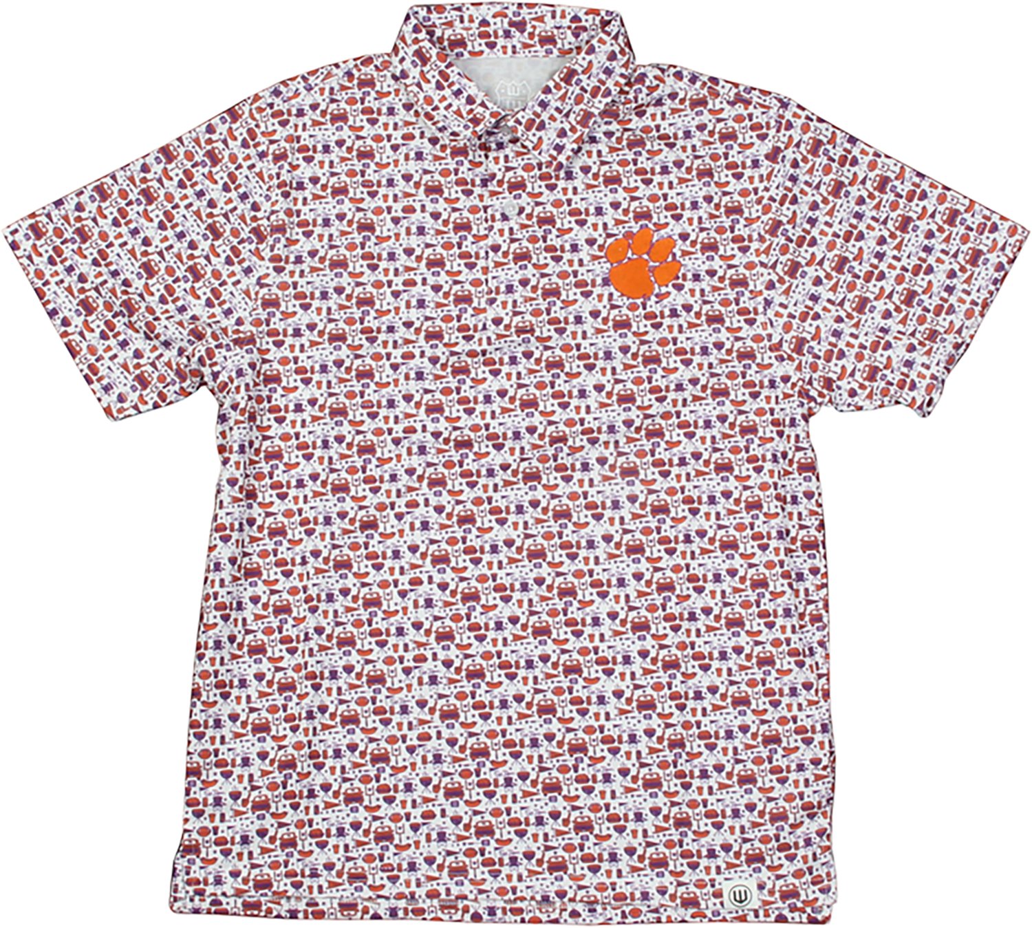 Wes & Willy Boys' Clemson Allover Tailgate Polo Shirt
