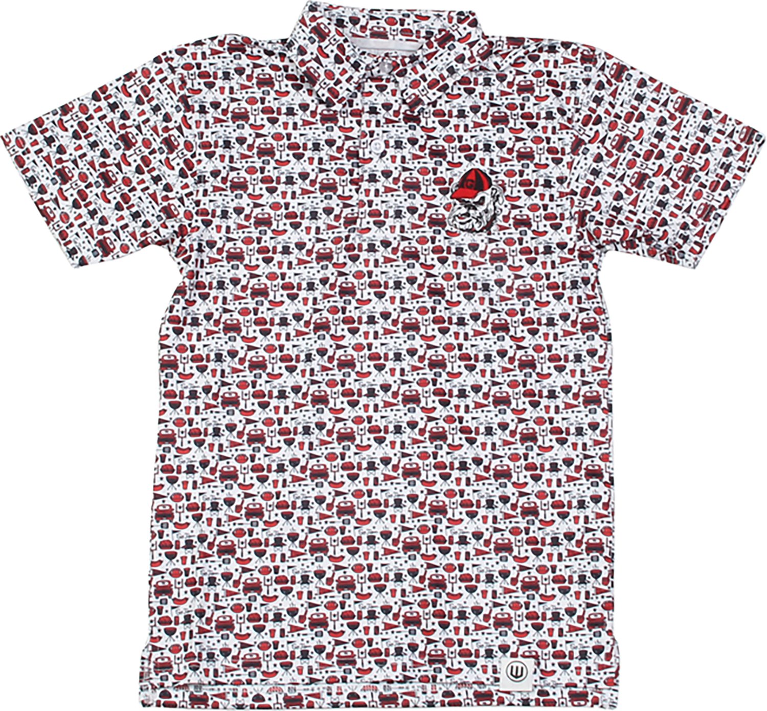 When you want to make everyone jealous on gameday, throw on the Wes & Willy Boys' Georgia Allover Tailgate Polo Shirt. This polo shirt offers soft polyester and spandex construction to provide a lived-in look, and its allover school-based print is sure to get compliments at your next tailgate.