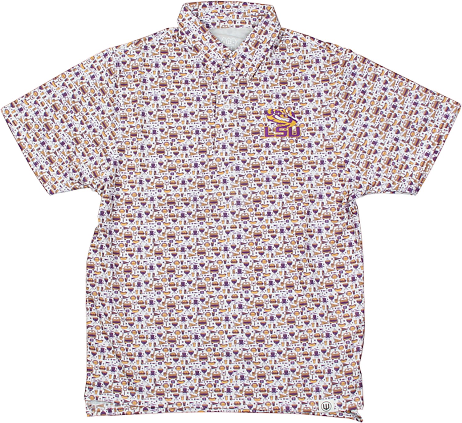 When you want to make everyone jealous on gameday, throw on the Wes & Willy Boys' LSU Allover Tailgate Polo Shirt. This polo shirt offers soft polyester and spandex construction to provide a lived-in look, and its allover school-based print is sure to get compliments at your next tailgate.