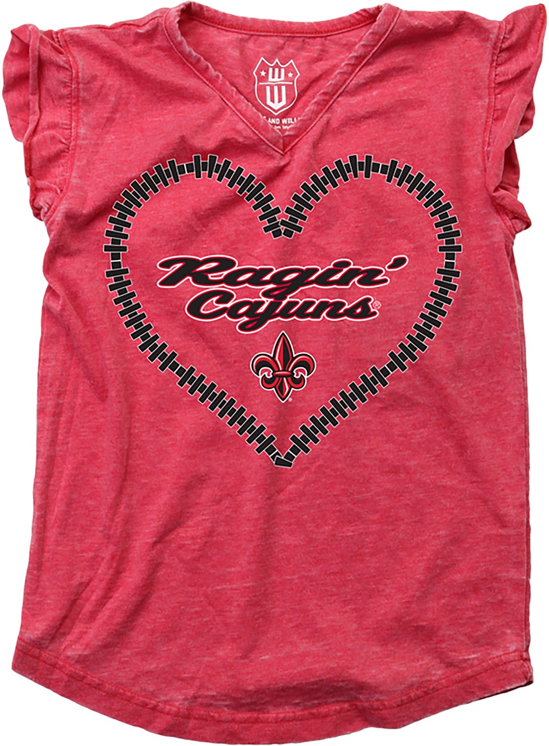 Wes & Willy Girls' University of Louisiana-Lafayette Heart Burnout Ruffle Graphic T-shirt