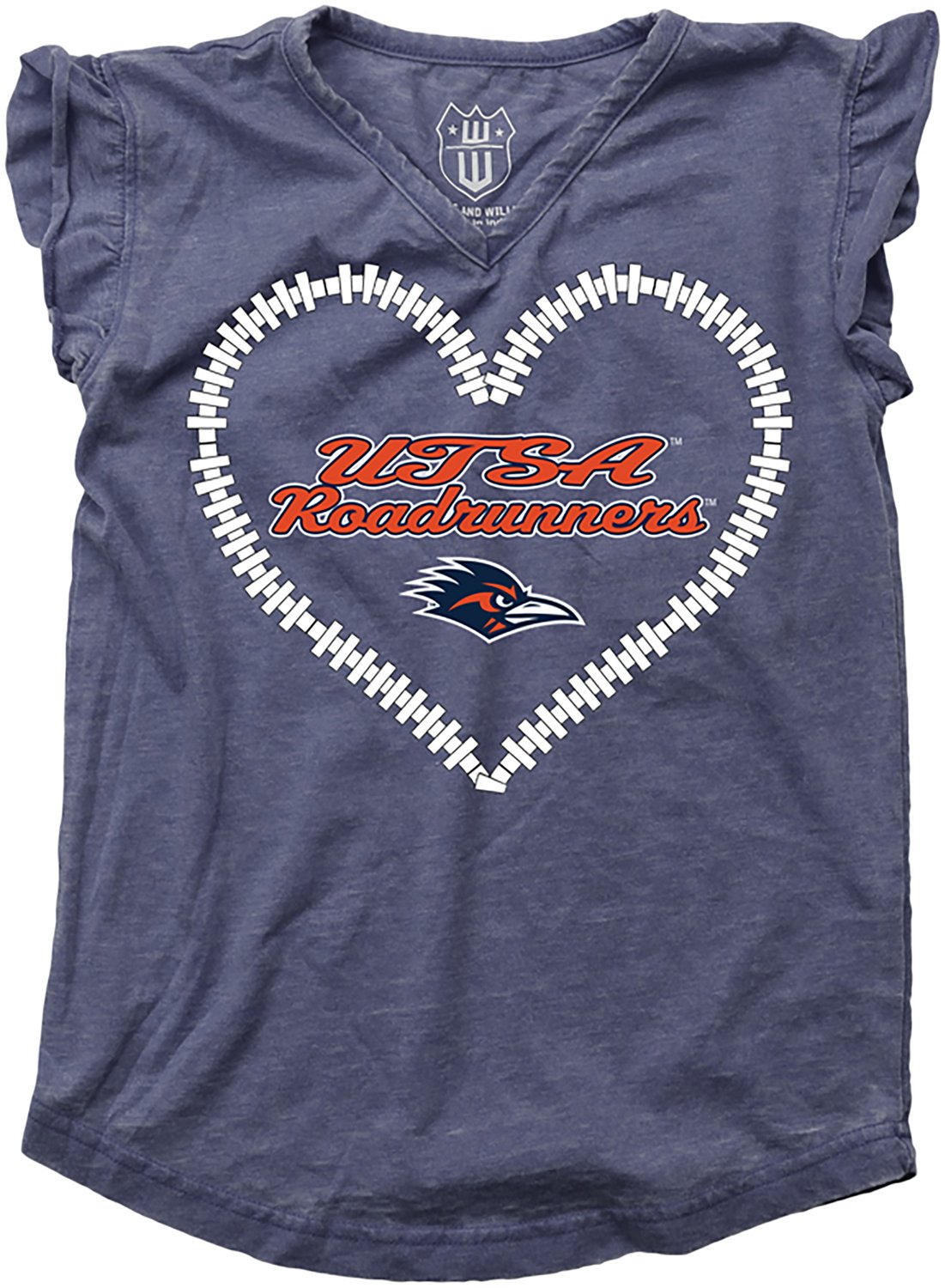 Show off your love for the Roadrunners with the Wes & Willy Girls' University of Texas at San Antonio Heart Burnout Ruffle Graphic T-shirt. The cotton and polyester material provides a comfortable feel, while the graphic design offers a stylish look.