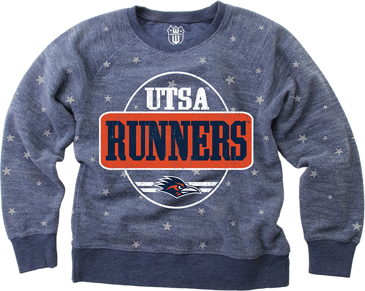 Stay warm while cheering on your team with the Wes & Willy Girls' UTSA Shimmer Star Reverse Fleece Crew Sweatshirt. The cotton and polyester construction provides comfort and durability, while the team logo makes it clear you're a dedicated fan.