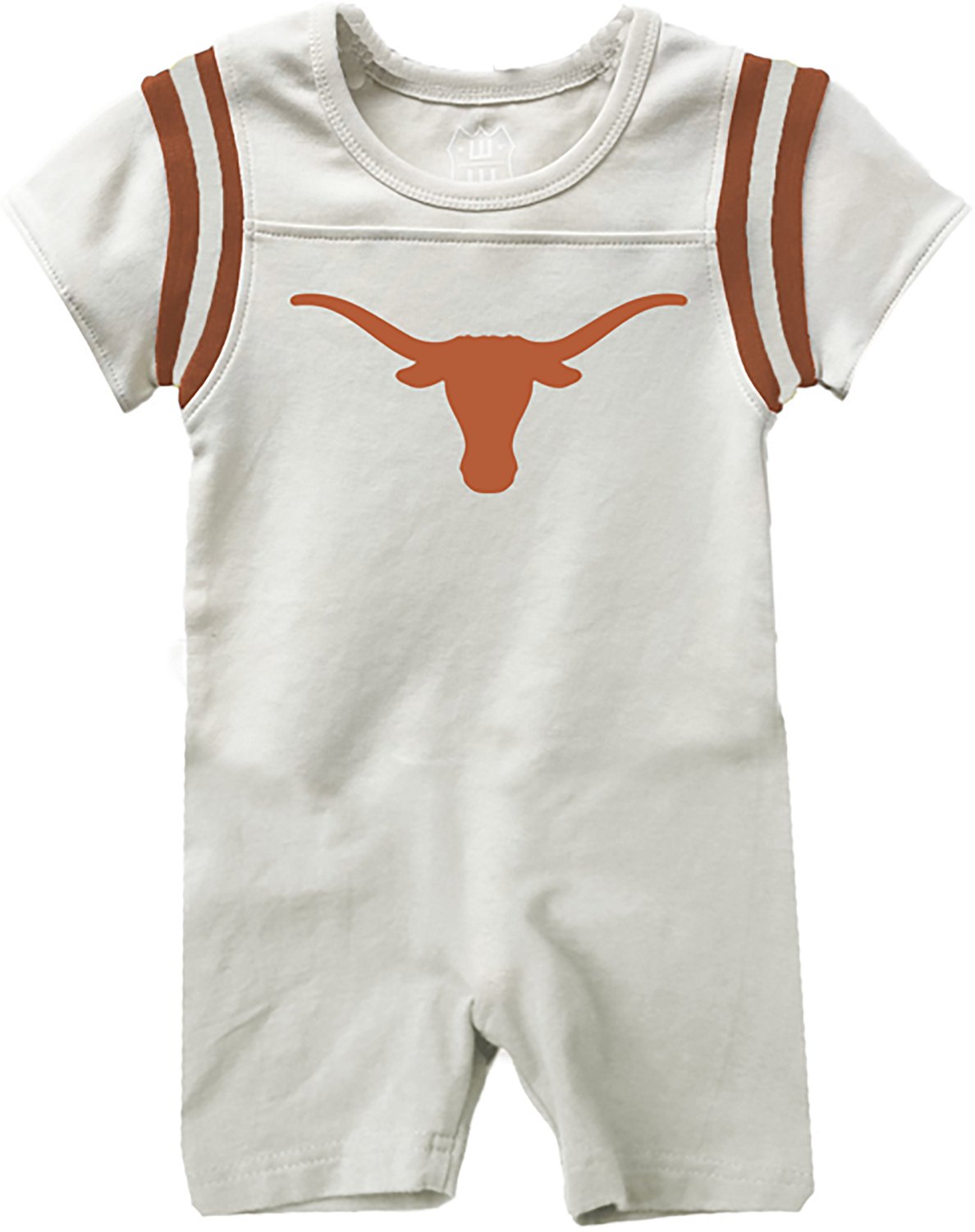 Introduce the newest Longhorns fan with the Wes & Willy Infant Boys' University of Texas Primary Logo Romper. The cotton interlock fabric provides a comfortable feel, while the school logo adds a stylish look.