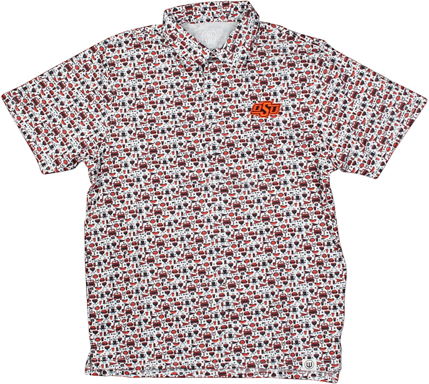 Wes & Willy Men's Oklahoma State University Allover Tailgate Print Polo Shirt