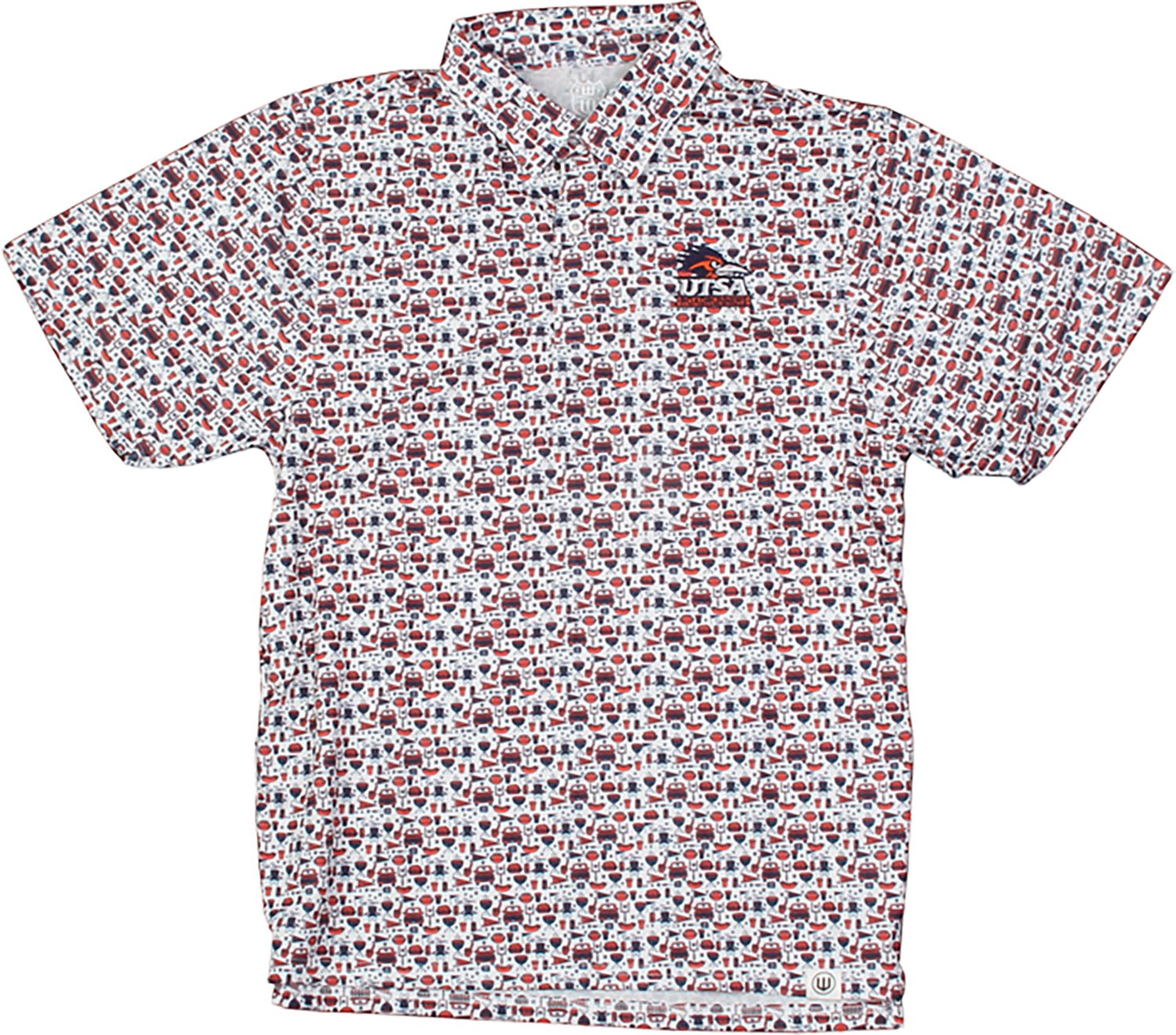Wes & Willy Men's University of Texas at San Antonio Allover Tailgate Print Polo Shirt