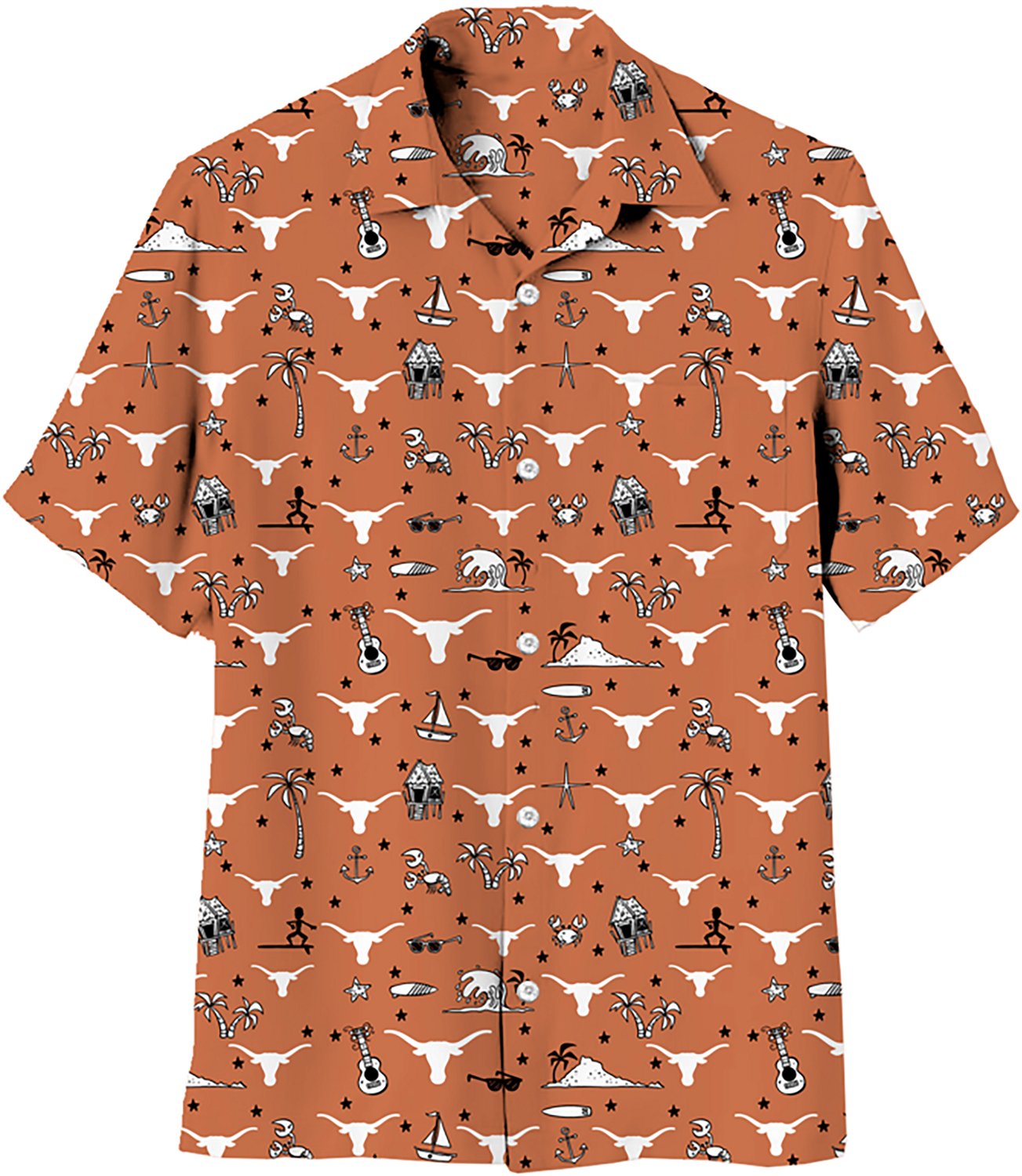 Wes & Willy Men's University of Texas Longhorns Beach Party Short Sleeve Button Down Shirt