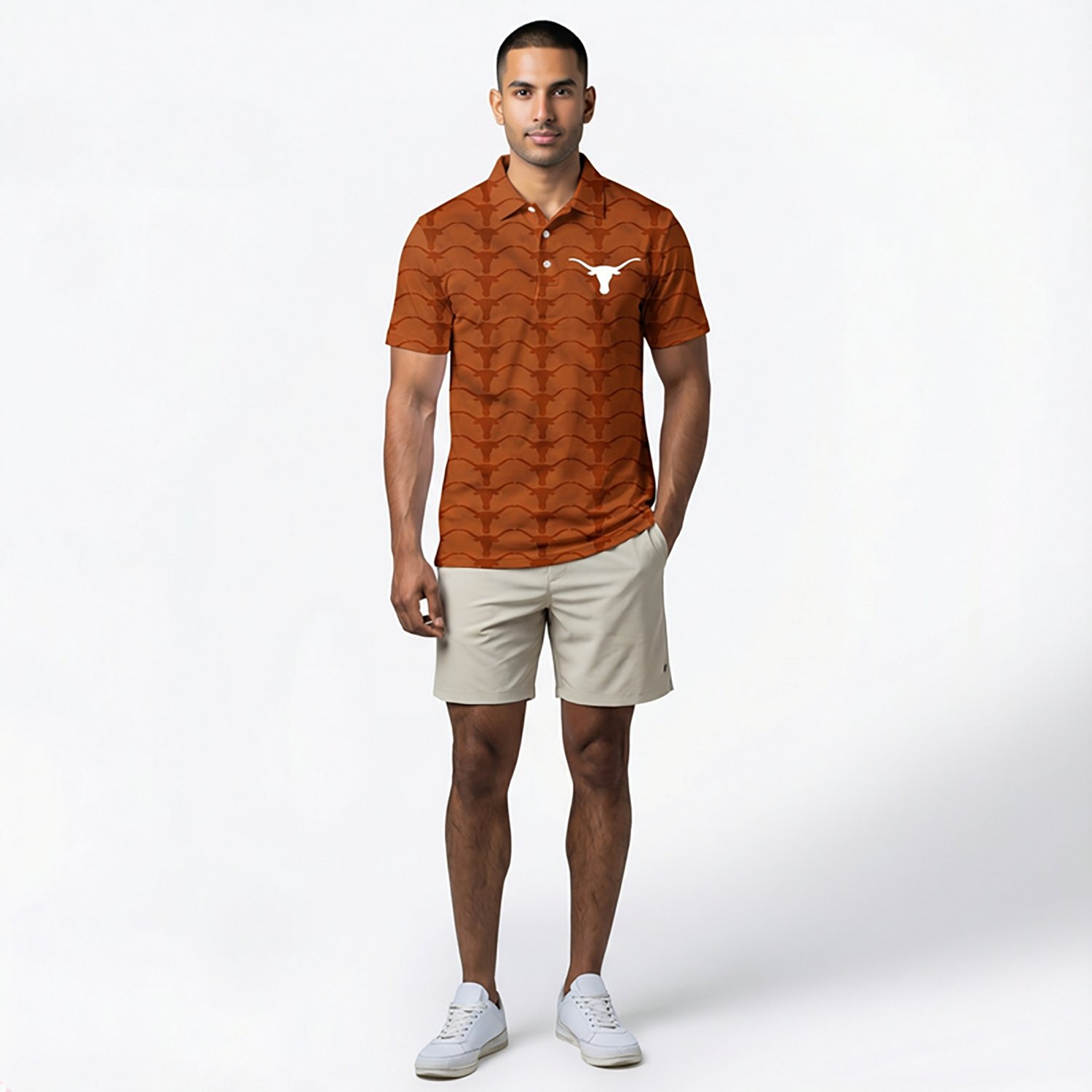 Wes & Willy Men's University of Texas Longhorns Tailgate All Over Print Short Sleeve Polo Shirt