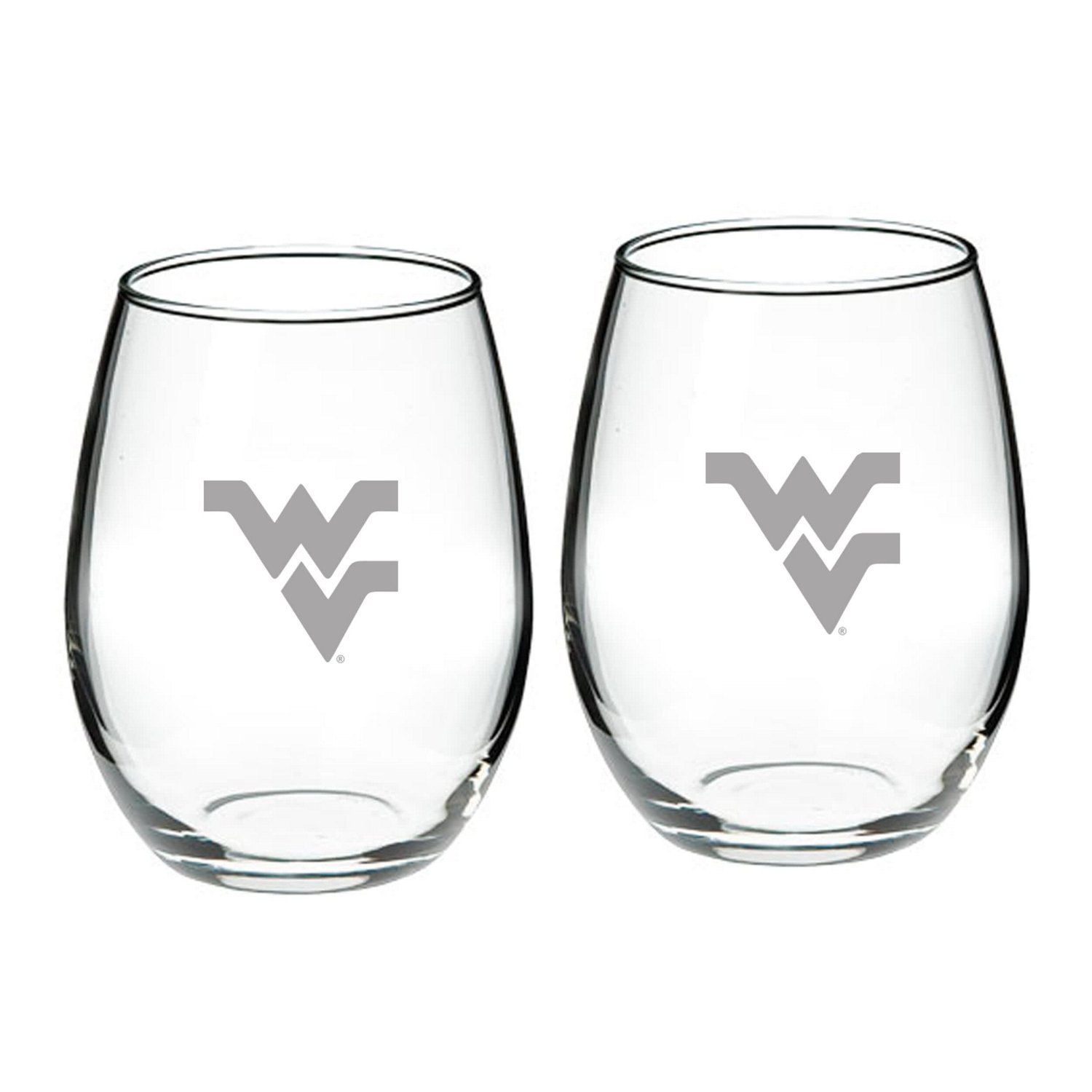 Celebrate every West Virginia Mountaineers win by enjoying your drink of choice out of this 21oz 2-Piece Stemless Wine Glass Set The glasses feature crisp etched graphics putting your die-hard fandom on full display with every use Pour up a drink while showing off your West Virginia Mountaineers pride at the next gathering