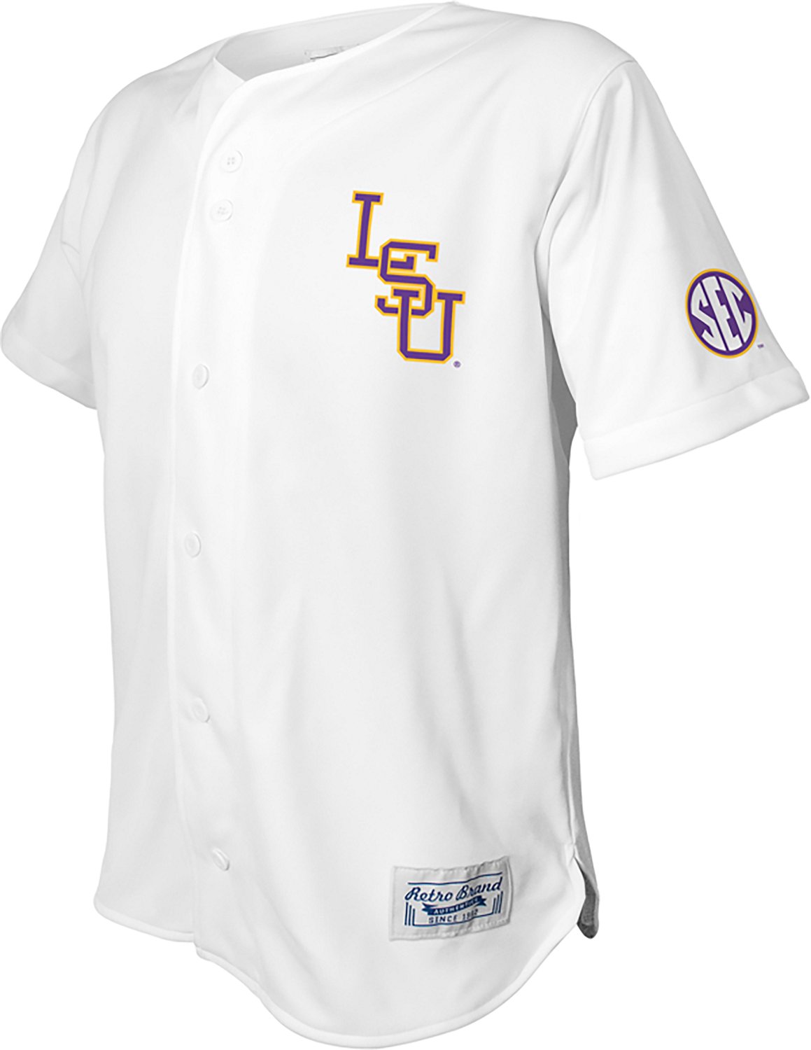 Root for your favorite team when you wear the WILDCAT RETRO Men's LSU Tigers Baseball Jersey. It is made of 100% polyester. The short sleeves keep you cool, and its V-neckline offers the iconic baseball jersey look. The "LSU" script is screen-printed on the front, showing off your school sprit.