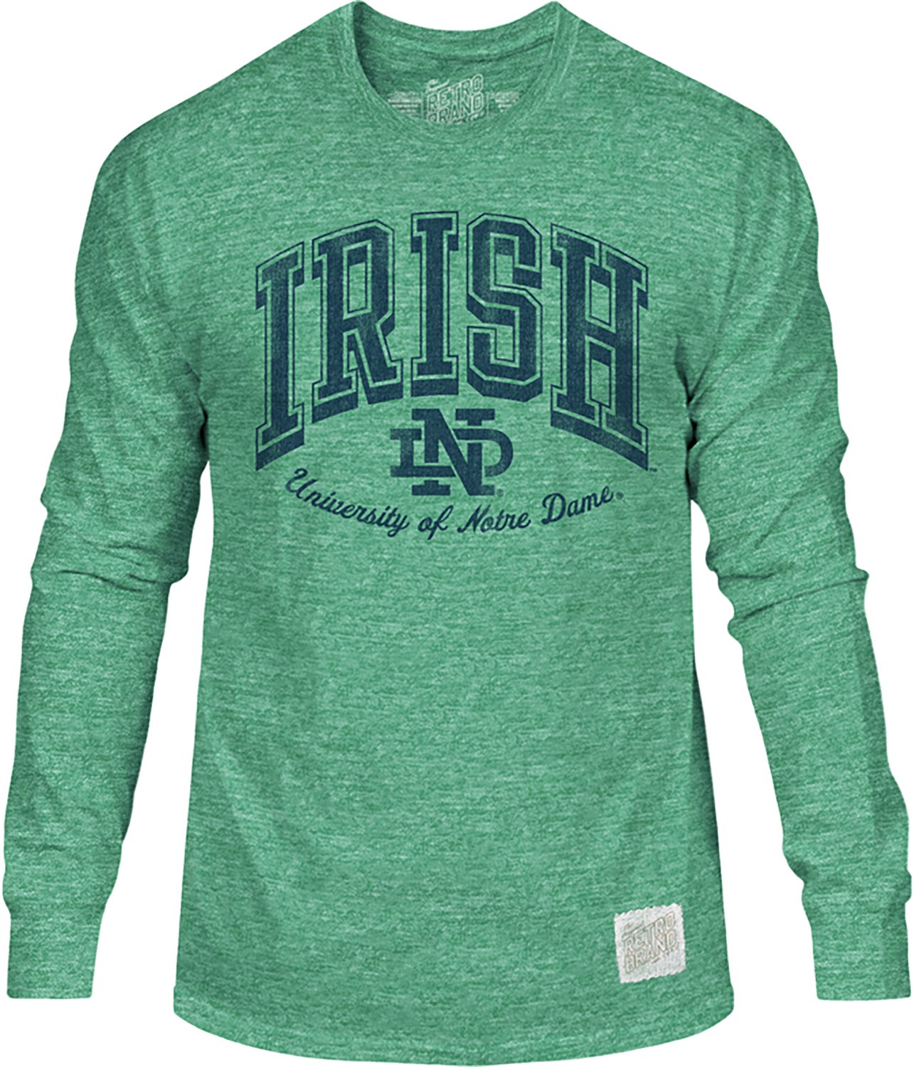 Show off your love for your team with the WILDCAT RETRO Men's Notre Dame Irish Arch Triblend Long Sleeve T-shirt. The polyester, cotton and rayon construction offers comfortable wear all day long, while the team graphic displays your fandom.