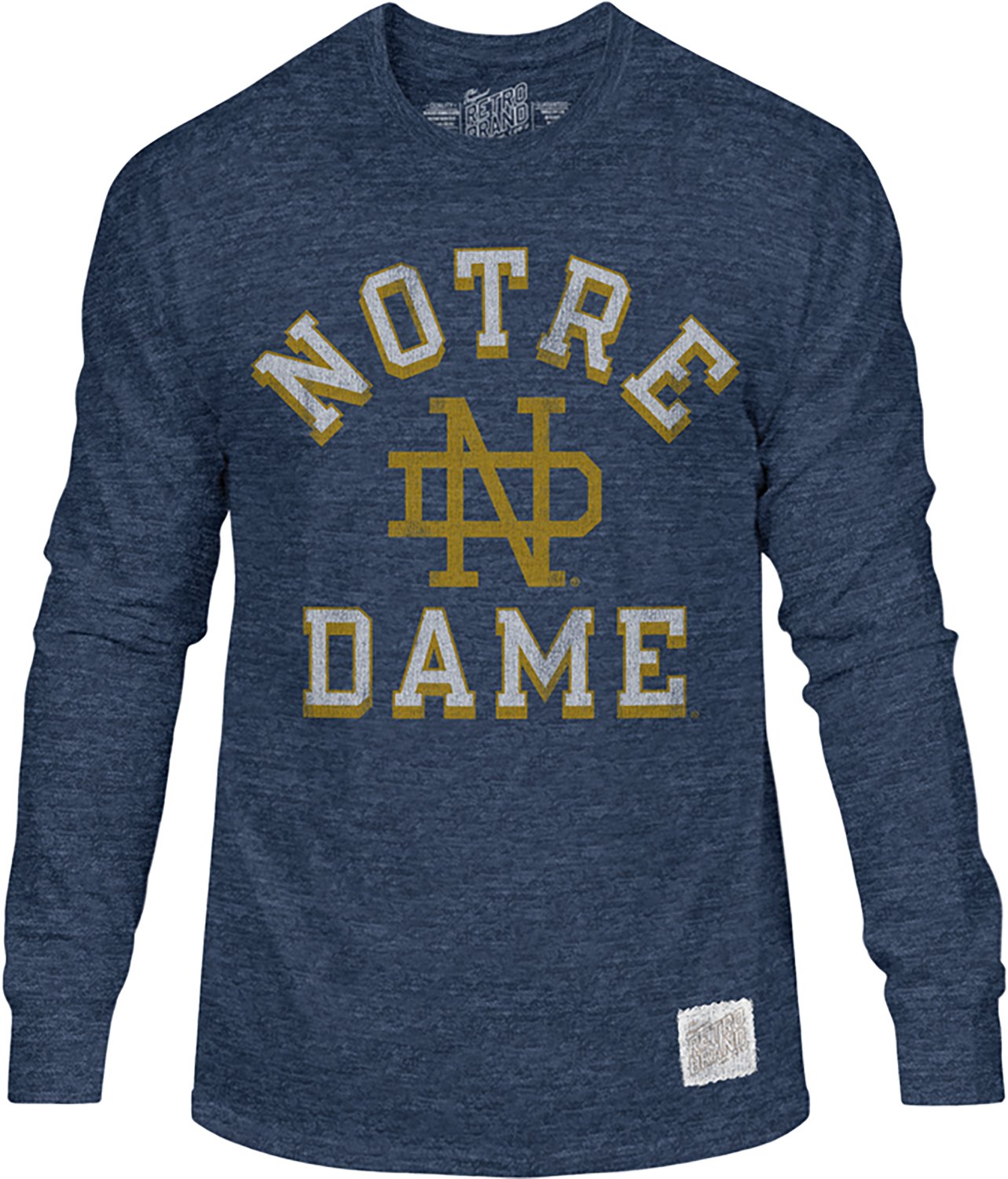 WILDCAT RETRO Men's Notre Dame School Arch Triblend Long Sleeve T-shirt