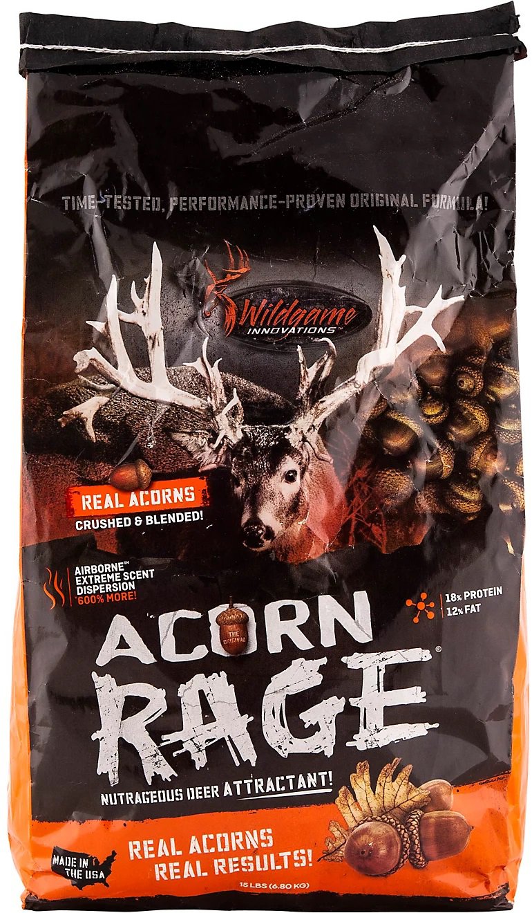Take advantage of the attractant in acorns with the Wildgame Innovations Acorn Rage 15 lb Bag. The 100% real crushed acorns get deer interested, and the roasted soybeans make it even more tasty and useful.