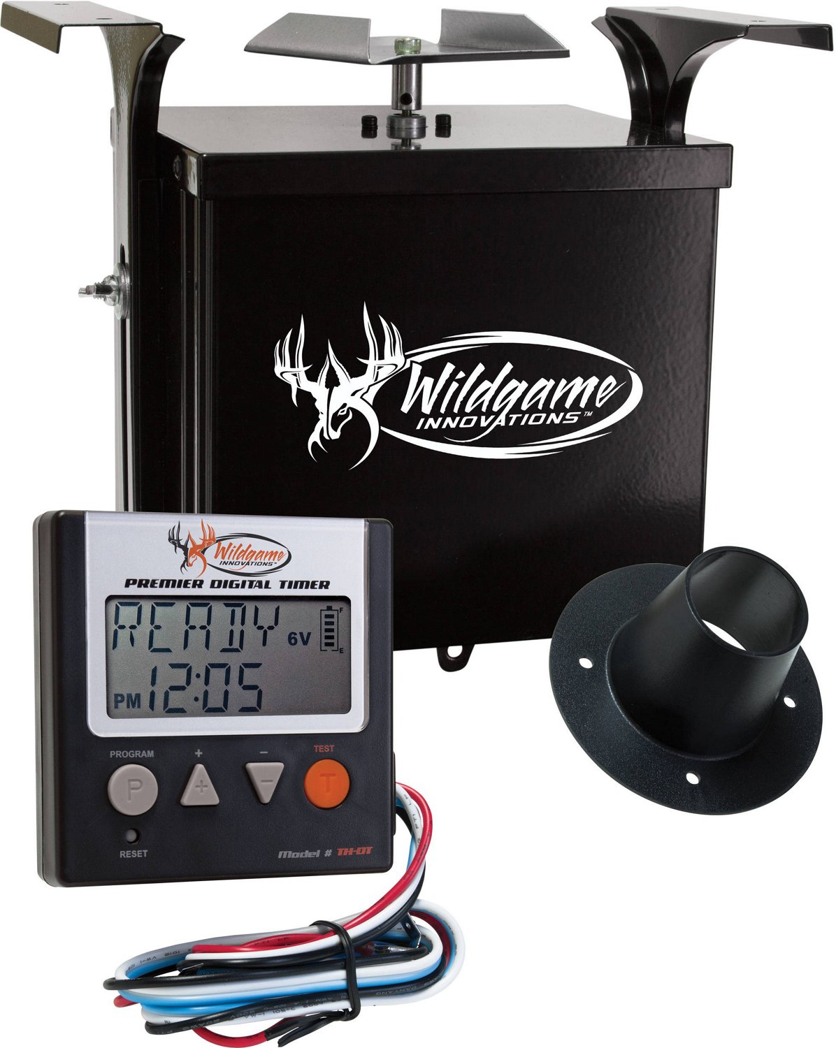 Attract game with the Wildgame Innovations Digital Power Control Unit. The unit is constructed from powder-coat galvanized steel for durability and features an easy-to-read liquid crystal display. Program 6 daily feed times from 1 to 30 seconds and adjust the speed of the high-torque 6V motor to spread feed effectively.
