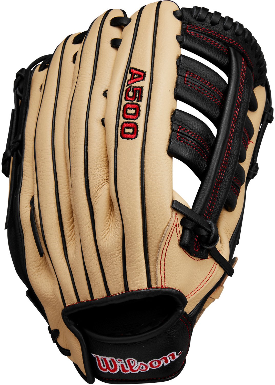 Learn the ropes with the Wilson 12.5 in Youth A500 Outfield Baseball Glove. The full-grain leather construction provides a soft feel, while rolled dual welting provides increased support and helps maintain shape. Front side double palm construction helps stabilize the pocket, and a Quick-Fit self-adjusting wrist uses an elastic system to connect the wrist strap to the pinky.