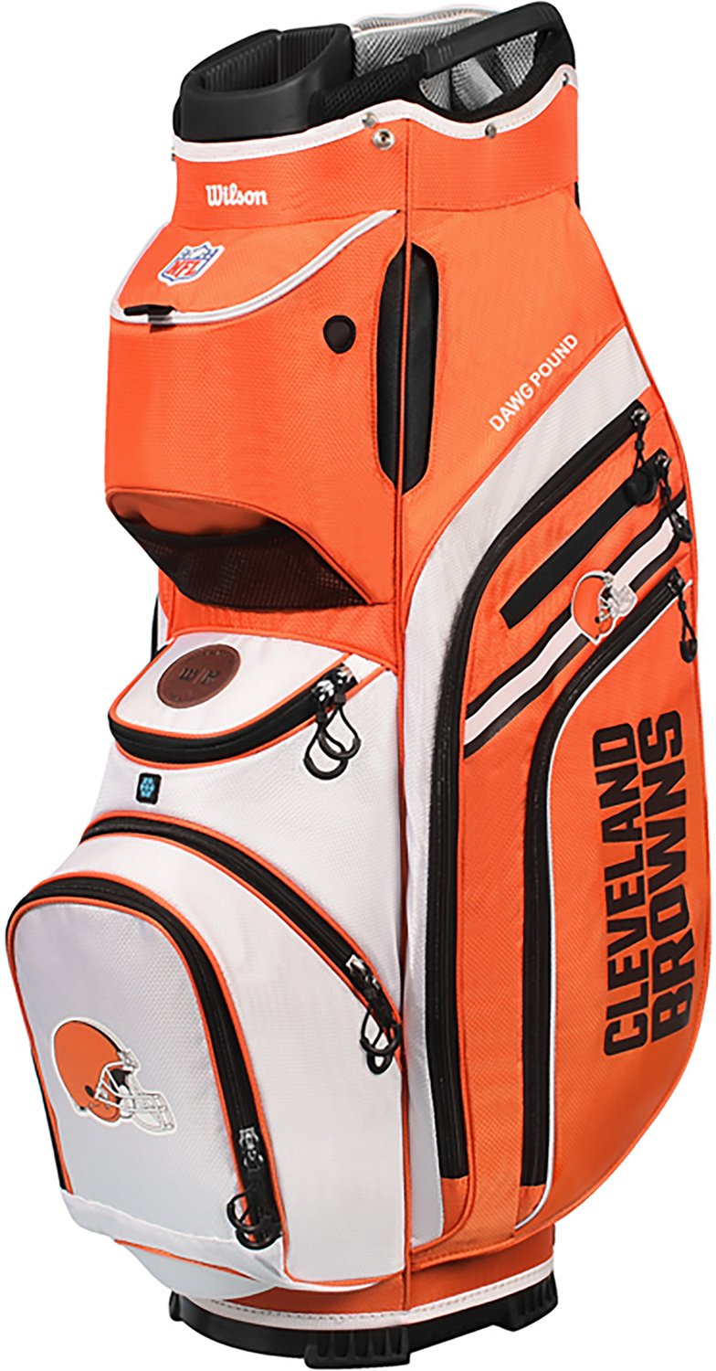 The Wilson Browns Cart Bag brings the Sunday ticket to the Saturday tee time. As the maker of the official NFL game ball for over 80 years, Wilson has poured that same authentic craftsmanship into a bag obsessively engineered for the fairway. Designed to sit flush on any riding cart or trolley, this bag pairs team-approved colors and premium logos with high-performance utility. From the 14-way divider that protects your shafts to the massive climate-controlled cooler pocket, it’s a pro-level command center for golfers who refuse to leave their fandom at the clubhouse.