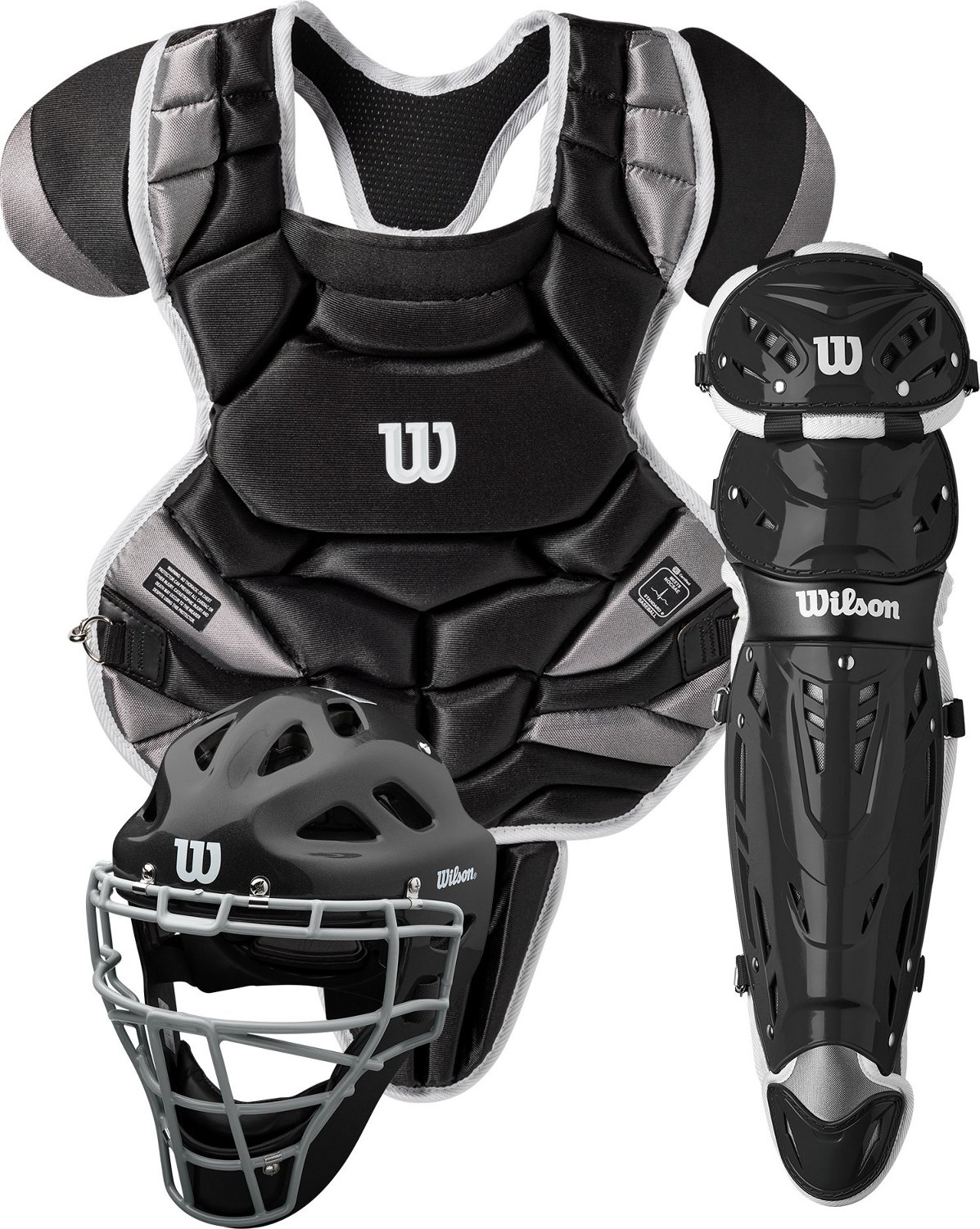 Feel ready to take on any challenge thrown your way with the Wilson Adults' C1K Intermediate Catcher's Protective Gear Kit. This kit comes with a helmet, a chest protector and 2 leg guards made of premium-grade ABS plastic for durability and plush, high-density foam padding for reliable protection. The adjustable straps and removable shoulder caps encourage a comfortable range of motion, while the removable pads make cleaning your gear a breeze.