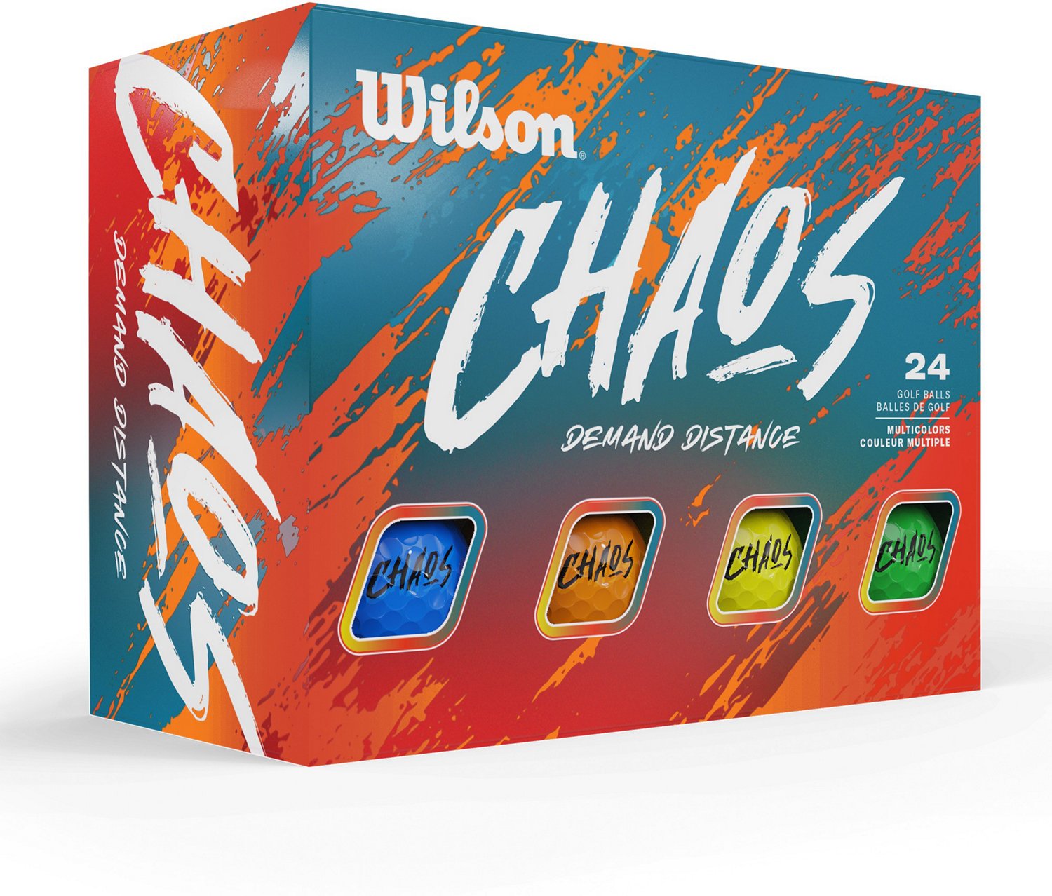 Practice your golf swings with the Wilson Chaos Golf Balls 24-Pack. These golf balls deliver increased power and distance off the tee, ensuring predictable performance on approach shots. The balls also offer playability on and around the green.