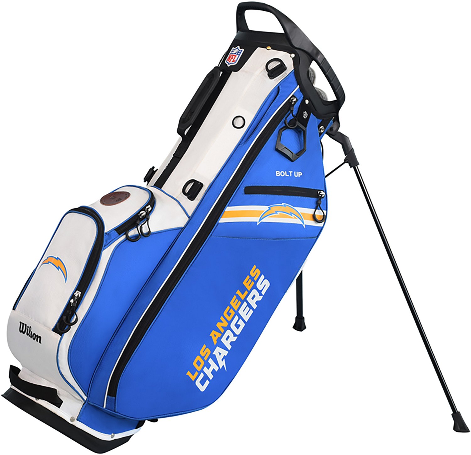 The Wilson Chargers Stand Bag lets you carry your colors with confidence. Tee off with your team and bring your fandom to the fairway. As the official provider of the NFL game ball since 1941, Wilson delivers authentic craftsmanship in a stand bag obsessively engineered for performance. Lightweight yet sturdy, this bag features a magnetic GPS pocket, integrated beverage pocket, ergonomic double shoulder straps, and quick-activation legs for easy carrying and setup. Finished with premium NFL logos, team-approved colors, and a unique leather commemorative pouch, it’s built for golfers who want tour-ready function with unmistakable team pride.