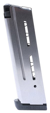 The Wilson Combat® 1911 .40 S&W 9-Round Magazine is made of heat-treated, aircraft-grade stainless steel for durability and features heavy-duty spring construction for long service life, enhanced feeding and positive slide stop operation.