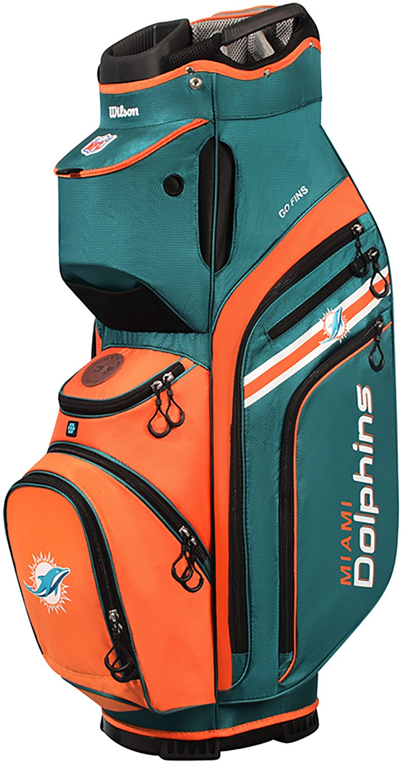 The Wilson Dolphins Cart Bag brings the Sunday ticket to the Saturday tee time. As the maker of the official NFL game ball for over 80 years, Wilson has poured that same authentic craftsmanship into a bag obsessively engineered for the fairway. Designed to sit flush on any riding cart or trolley, this bag pairs team-approved colors and premium logos with high-performance utility. From the 14-way divider that protects your shafts to the massive climate-controlled cooler pocket, it’s a pro-level command center for golfers who refuse to leave their fandom at the clubhouse.