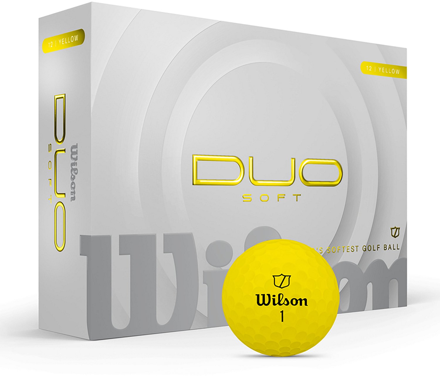 Practice for hole in ones with the Wilson Duo Soft Matte Golf Balls 12-Pack. Its surlyn cover resists scuffs. The 2 layer construction reduces spin on longer shots, and its 37 compression rating helps golfers with slower swing speeds achieve maximum distance. The high energy core delivers maximum distance off the tee.