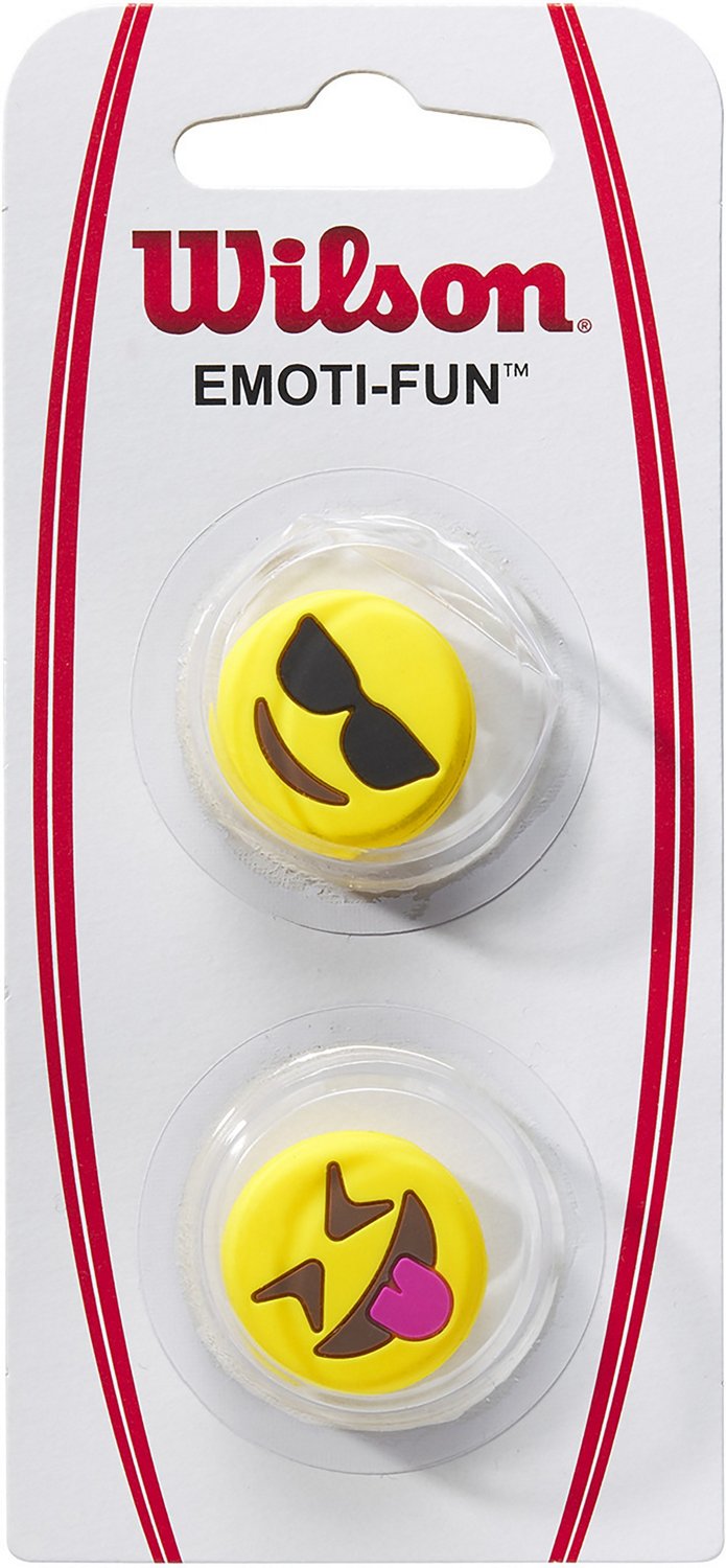 Improve your game when you use the Wilson Emoti-Fun Sunglasses/Tongue Out Vibration Dampeners 2-Pack. These dampeners are to be used between your racquet's strings to help lessen vibration for more controlled hits, and they have emoji design for a playful look.