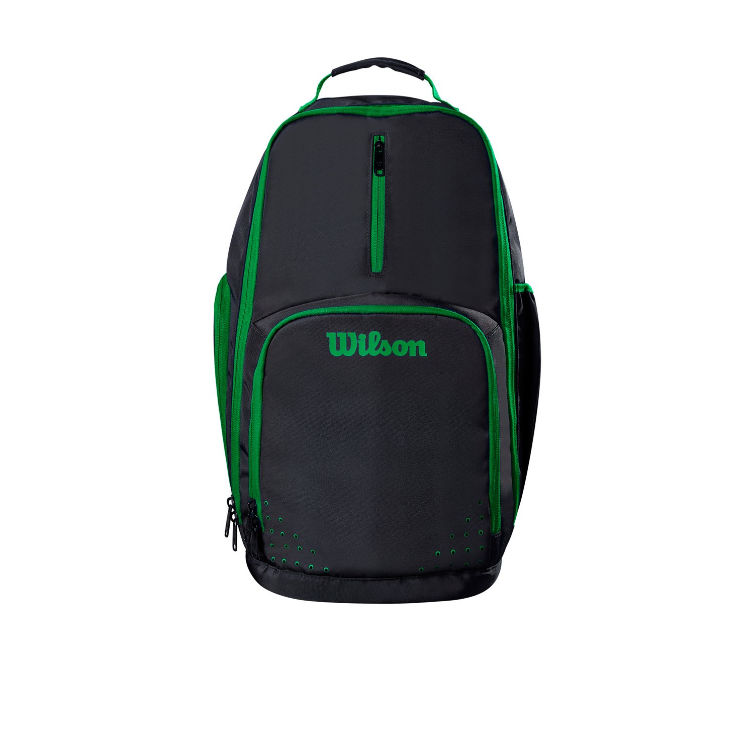 Keep your sports equipment nearby with the Wilson Evolution Backpack. The large main compartment offers ample space to store your equipment, while the thermal-lined pockets provide consistent storage temperature. The front and side perforations offer ample ventilation, and the phone sleeve on the strap provides easy access.