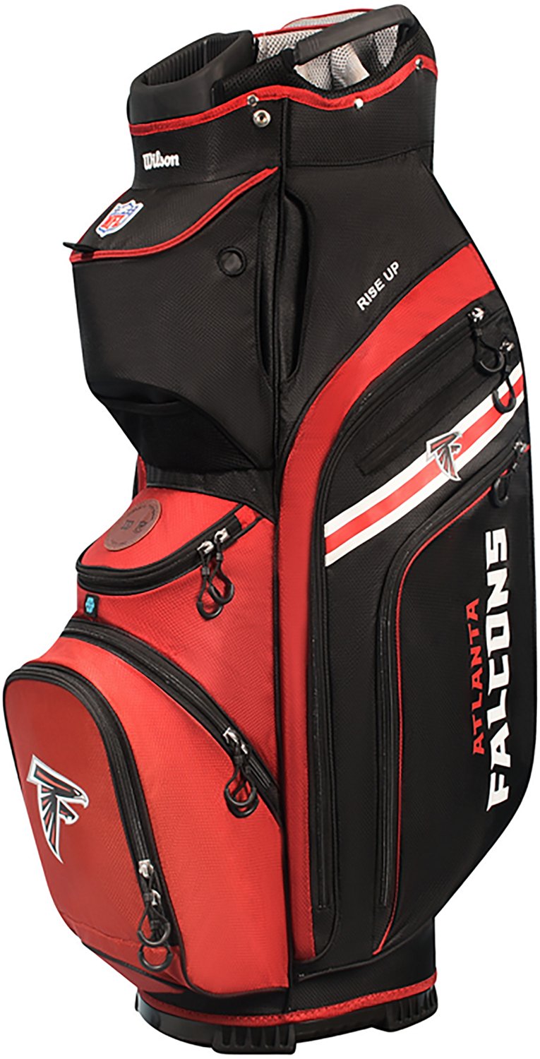 The Wilson Falcons Cart Bag brings the Sunday ticket to the Saturday tee time. As the maker of the official NFL game ball for over 80 years, Wilson has poured that same authentic craftsmanship into a bag obsessively engineered for the fairway. Designed to sit flush on any riding cart or trolley, this bag pairs team-approved colors and premium logos with high-performance utility. From the 14-way divider that protects your shafts to the massive climate-controlled cooler pocket, it’s a pro-level command center for golfers who refuse to leave their fandom at the clubhouse.