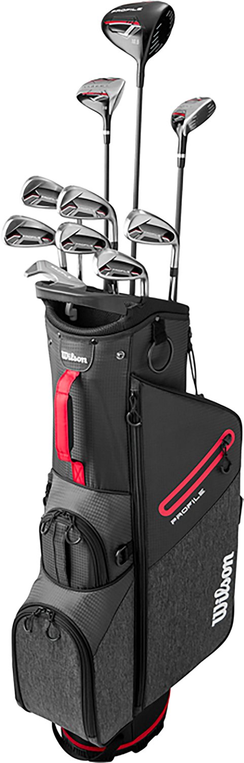 Your starter golf phenom will love getting this Wilson Juniors' Profile Stand Golf Set as a gift to start their season. Designed for teenage swing characteristics, its durable steel clubs' heads feature low centers of gravity, enhancing launch and improving longer-distance shots. Includes a driver, 3 wood, 5 hybrid, 6-9 irons, pitching and sand wedges, and a putter, plus headcovers and a stand bag.