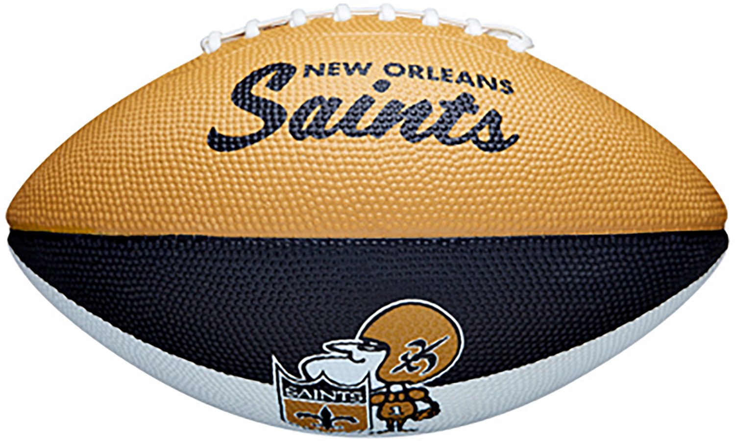 Bring another source of fun to the tailgate with the Wilson New Orleans Saints Mini Retro Football. Its pressure lock core retains air pressure. The rubber cover remain durable during all weather conditions, and its mini size is perfect for all ages. The designs feature retro logos and colors for the New Orleans Saints.