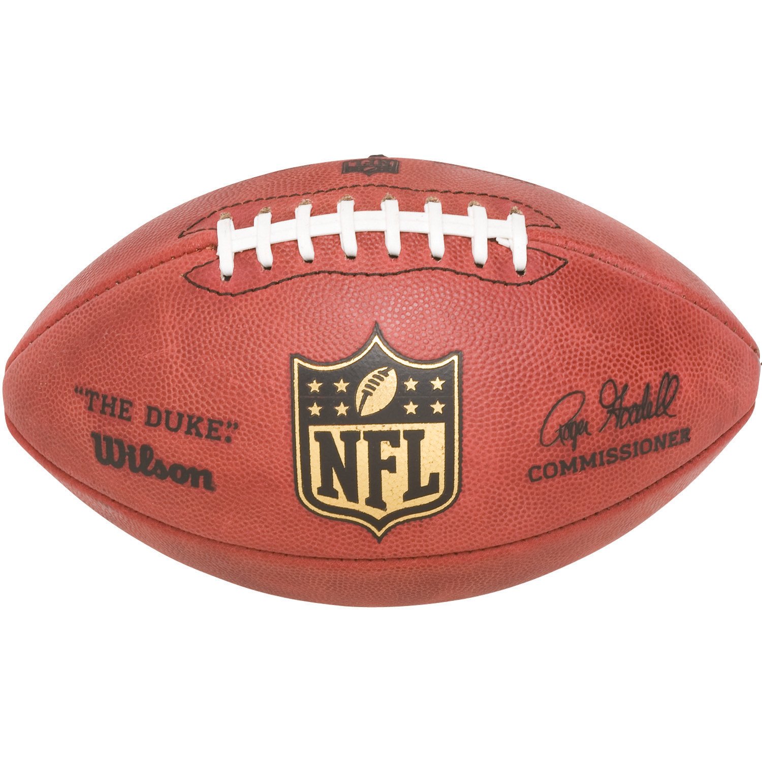 The Wilson NFL "The Duke" Official Game Ball is the official game ball of the NFL. The leather cover has deep pebbles and a firm texture to offer outstanding grip. This official-size football features a pro pattern.