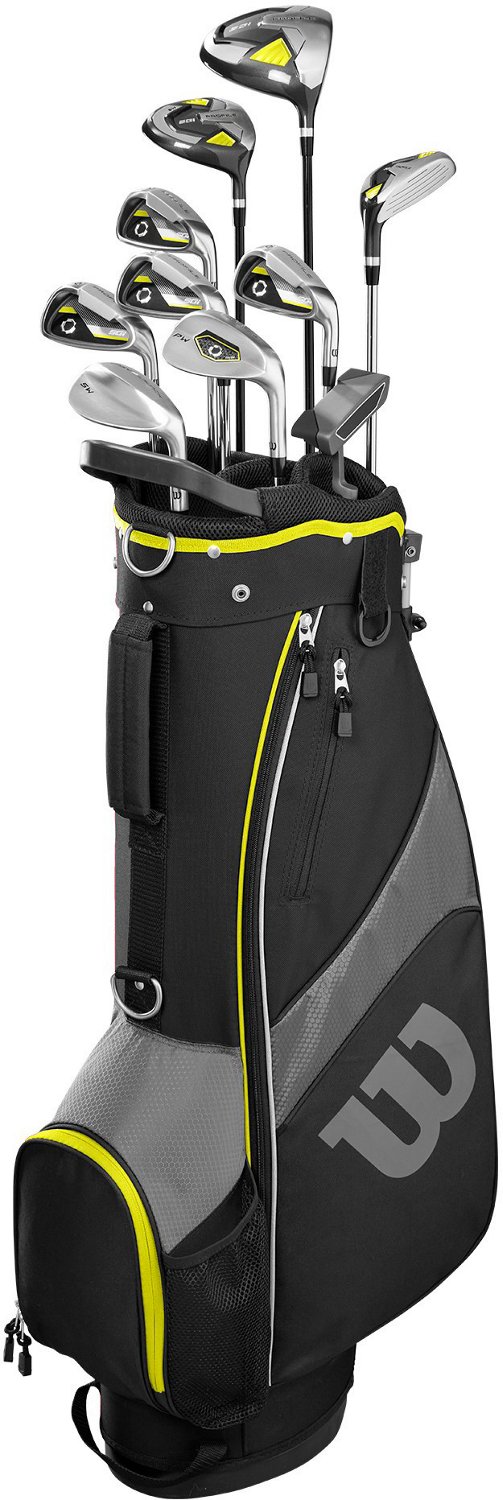 Whether you want to play with friends or you want to join a league with your mom or dad, the Wilson Profile SGI Teen Complete Golf Club Set is great for beginners. This complete set features an oversize 460cc driver head, so you can be sure you're hitting the ball off the tee. The fairway wood, hybrid, 6, 7, 8 and 9 irons, pitching wedge, sand wedge and putter ensure you have everything you need for the course. The Carry bag with Airflow™ shoulder straps make transportation a breeze.